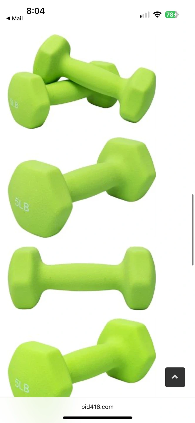 Selling a pair of 5lb dumbbells in a bright green colour. They are in great condition, perfect for home workouts!