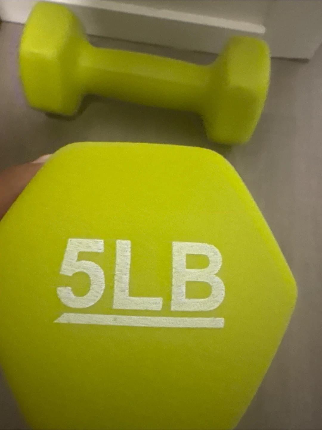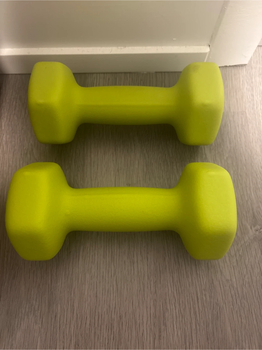 Selling a pair of 5lb dumbbells in a bright green colour. They are in great condition, perfect for home workouts!