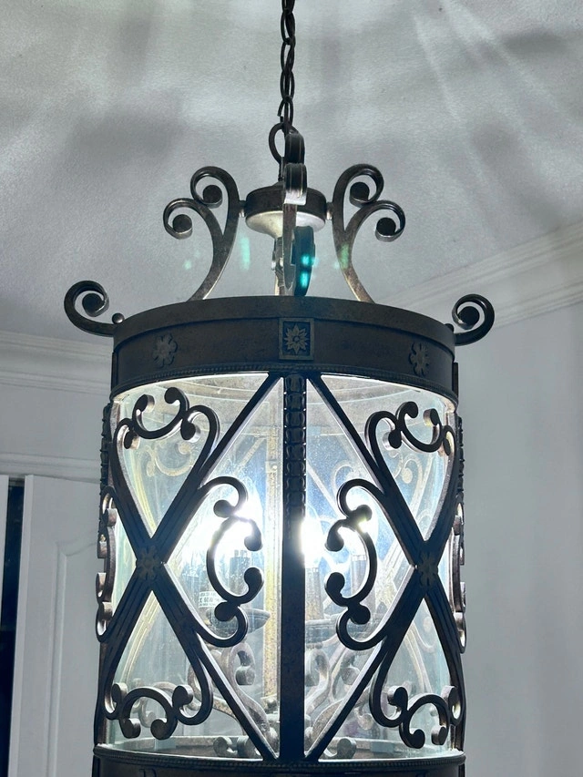 Rustic chandelier in like new condition. Takes chandelier bulbs. Measures 13” in diameter and 24” high (not including the adjustable chain). Pick up only.