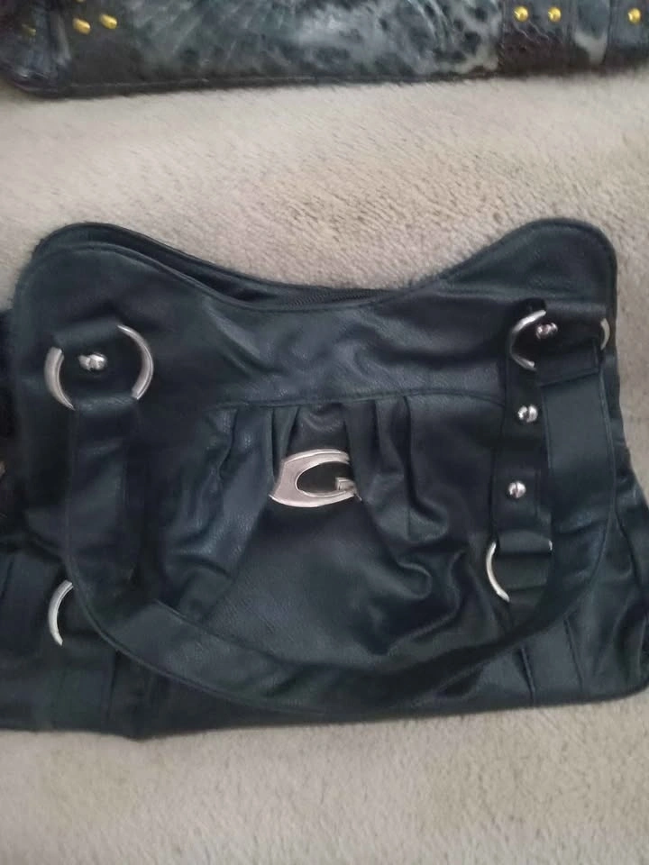Gently used purses in great condition. Some are new. The teal purse has a cross design, the brown one has a leopard face, the black one has a shiny finish, and the dark brown one has a zippered pocket. All have straps and are made of various materials including leather and suede. Many are Native design. Leather are 35.00 & other designs 45.00