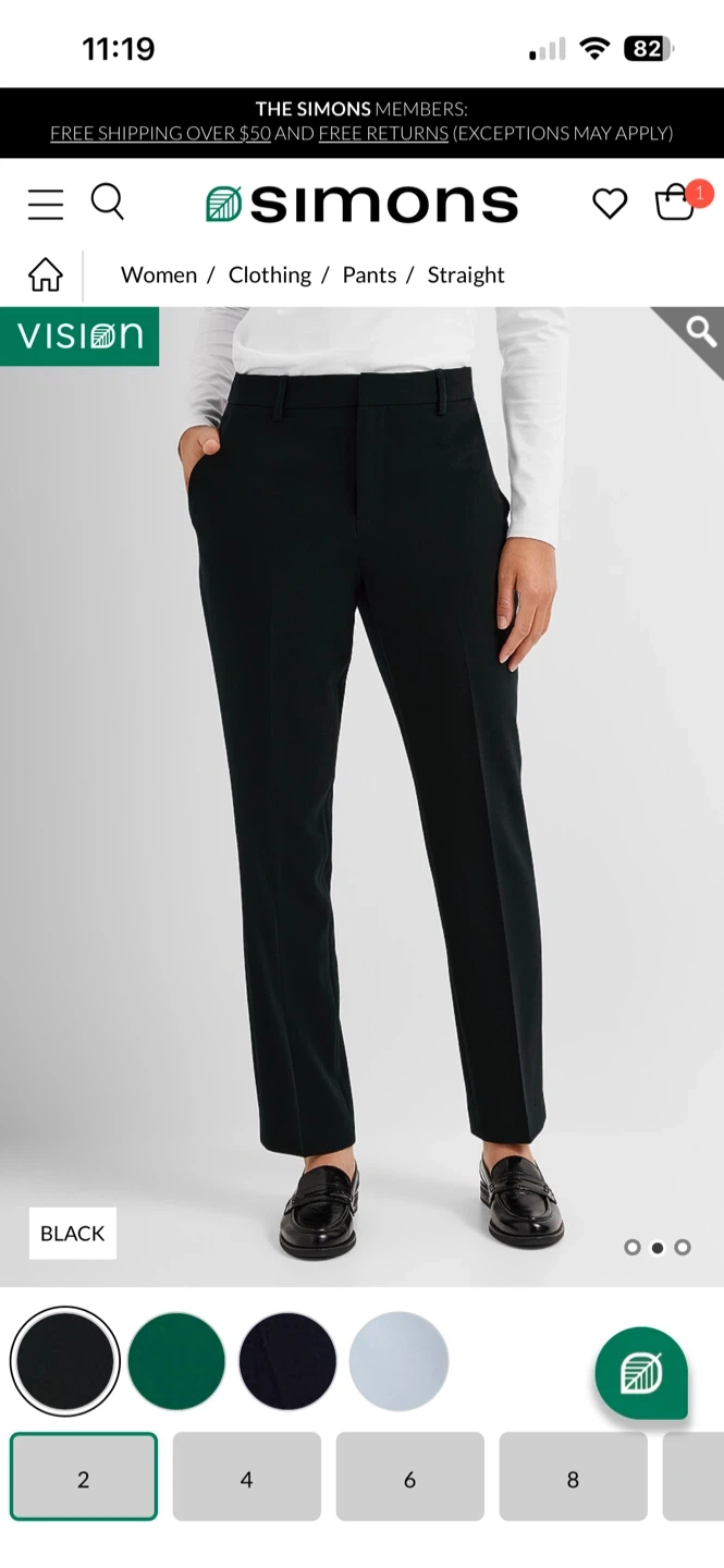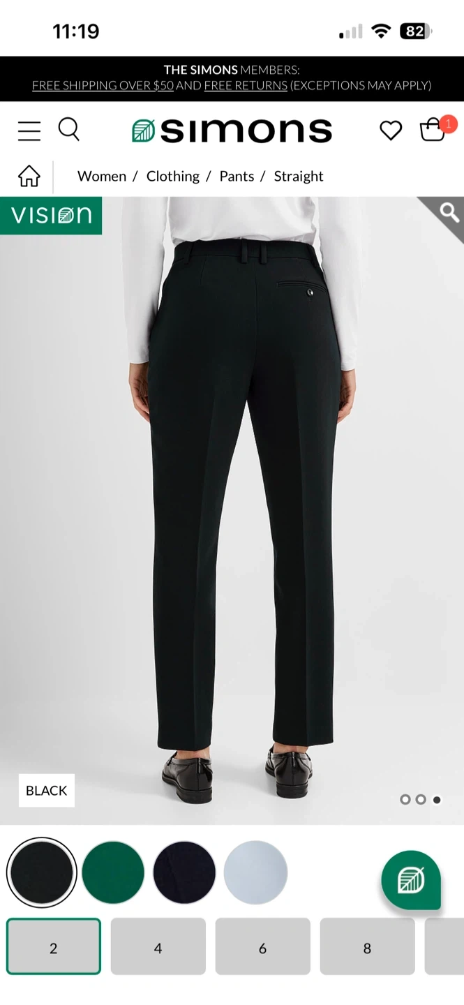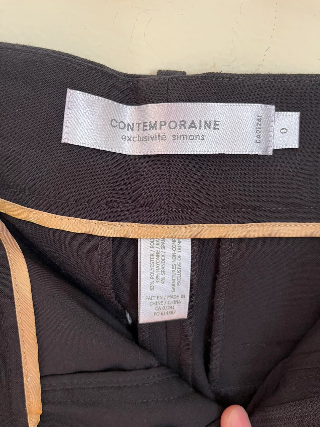 These black dress pants are from Contemporaine, exclusively from Simons. They're made with a blend of 63% polyester, 33% rayon, and 4% spandex. The pants are a size 0.