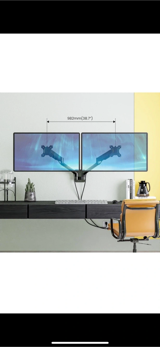 EASY ASSEMBLY - With this robust screen wall mount, you can eliminate tangled cables and keep your work area spacious and clean. Less than 10 minutes from opening the box to use. All the necessary instructions and hardware are included.
