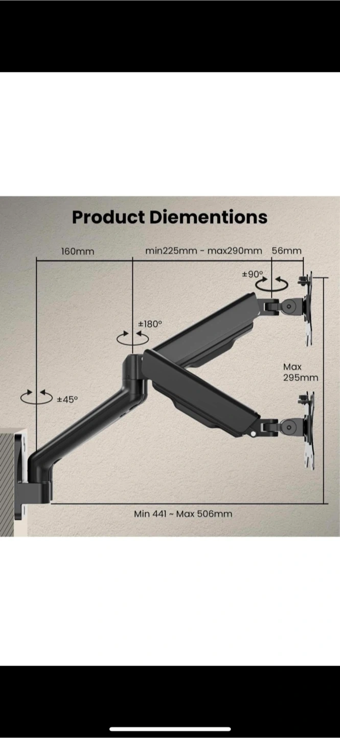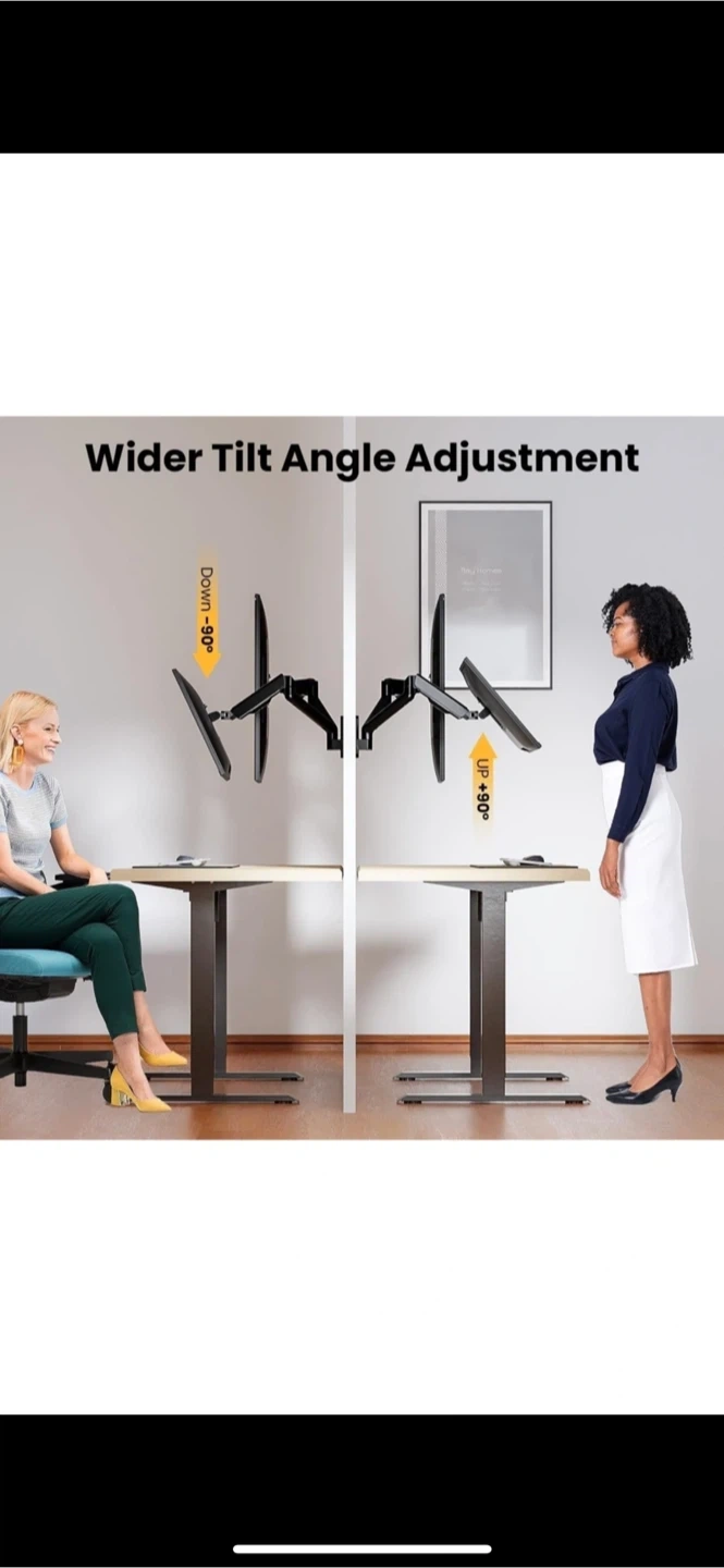 ULTIMATE FLEXIBILITY - Adjustable dual monitor wall mount offers +90° to -90° tilt, +90° to -90° swivel, and 360°rotation. Easily adjustable for optimal viewing whether you are sitting or standing at the computer to create a healthy working environment.