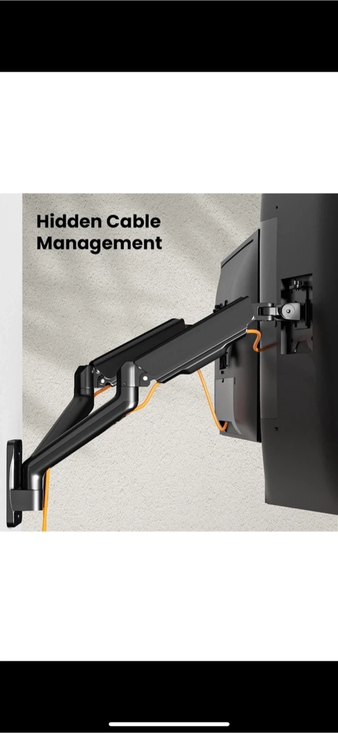 EASY ASSEMBLY - With this robust screen wall mount, you can eliminate tangled cables and keep your work area spacious and clean. Less than 10 minutes from opening the box to use. All the necessary instructions and hardware are included.