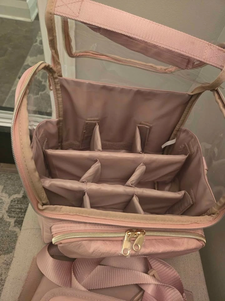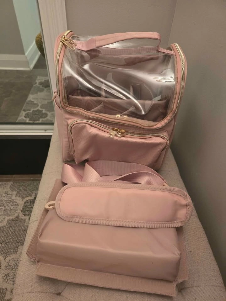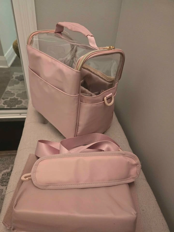 Brand new multifunctional organizer bag with shoulder straps and removable compartments. Can be used as a cosmetic bag or art bag. Beautiful pink color. Pick up from Don Mills and Overlea intersection.