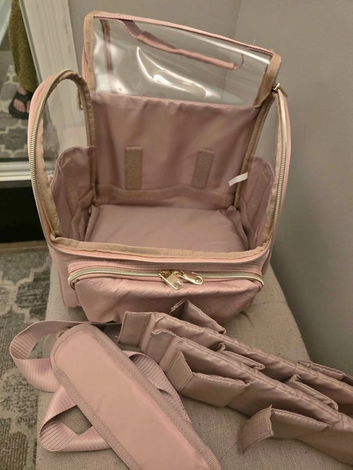 Brand new multifunctional organizer bag with shoulder straps and removable compartments. Can be used as a cosmetic bag or art bag. Beautiful pink color. Pick up from Don Mills and Overlea intersection.