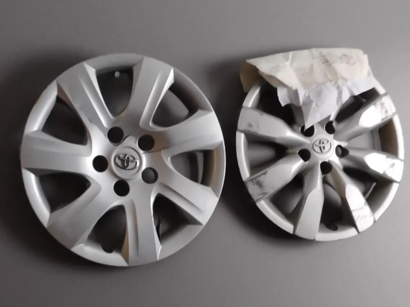 Buy & SellToyota Hubcaps - Set of 2Toyota Hubcaps - Set of 2$15Selling two silver Toyota hubcaps. They're silver and appear to be made of plastic. One hubcap has some paper taped to it.WHERE TO MEET155 Wheatfield crescentView MapSELLERKanePioneer Park151 review0 chats·0 favorites·3 viewsSEND CHAT TO SELLERHi Kane! I’m interested in your listing.Hi Kane! I’m interested in your listing.Get the Karrot app to chatSign In to chat