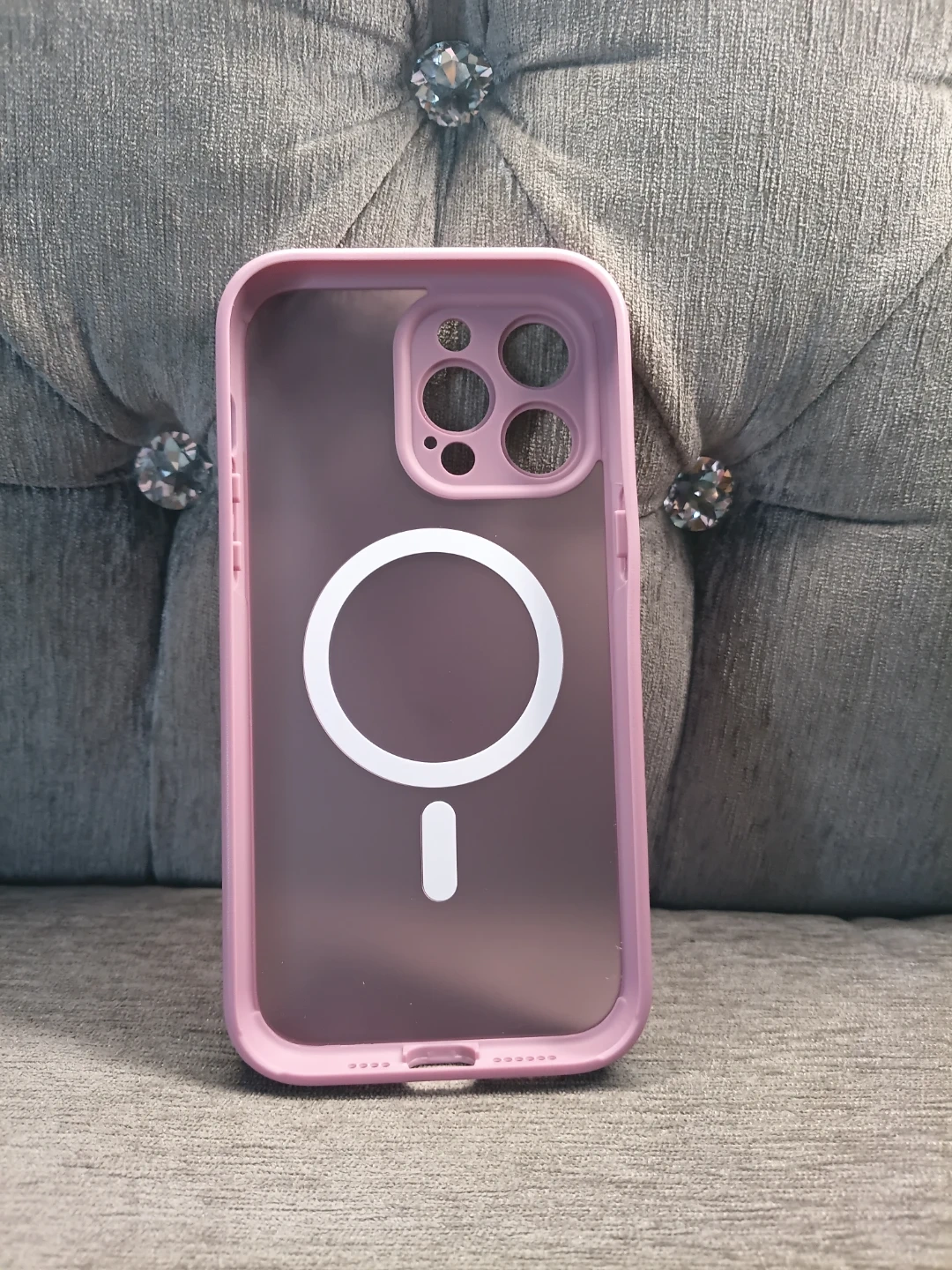 Selling a pink iPhone case with MagSafe. It's in great condition and ready for a new phone! This case is a stylish way to protect your phone, while keeping it compatible with all your MagSafe accessories