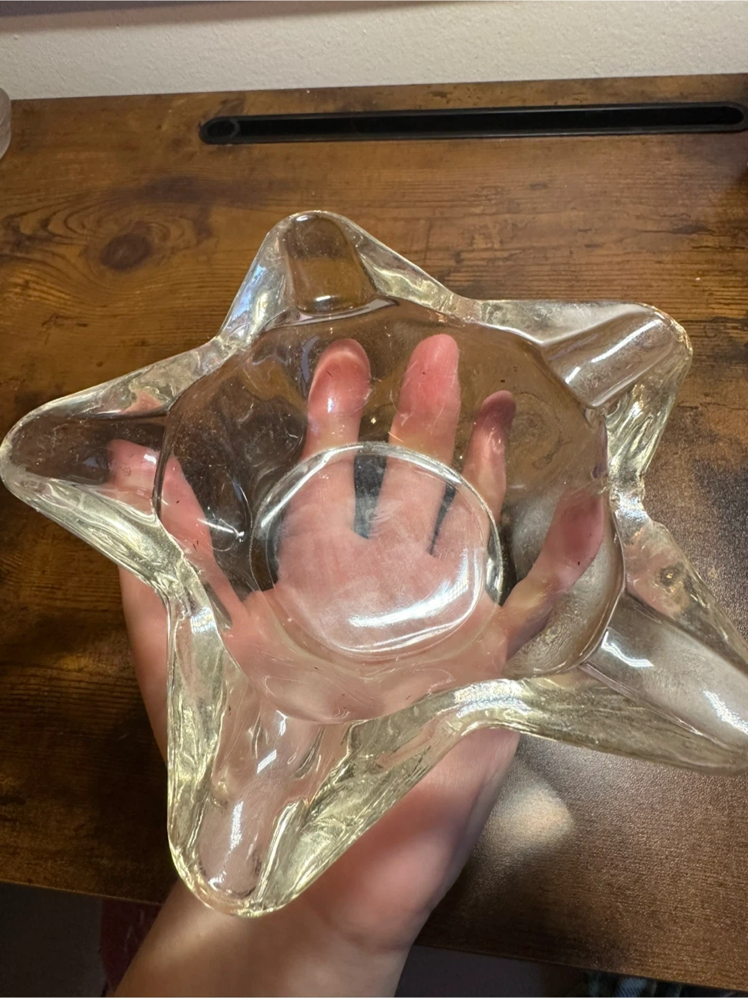 This is a heavy glass ashtray/bowl shaped like a star. I’m not sure if it’s ever been used. We’re not smokers and trying to declutter, so I’m hoping it will go to someone who will use it.