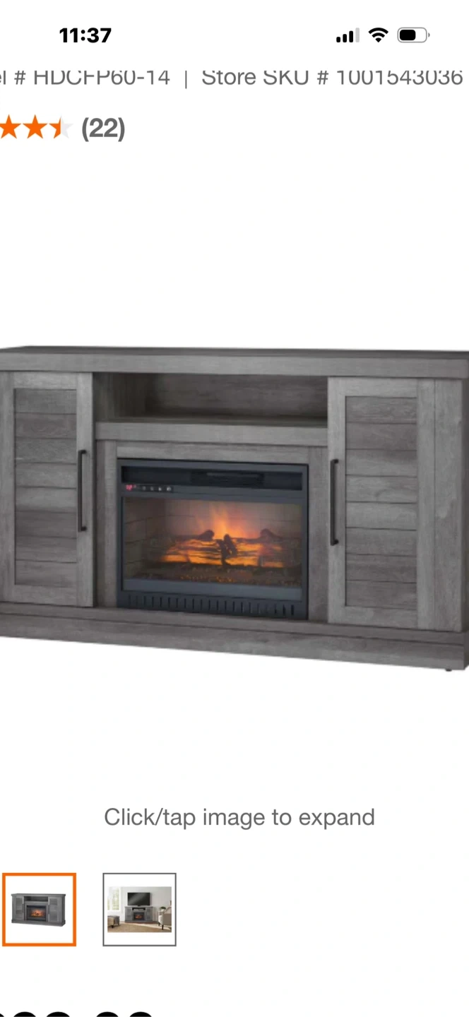 This TV stand features a built-in electric fireplace with a rustic grey finish. It includes a centre shelf and two side cabinets for storage. Great for adding warmth and ambiance to your living room! not pictured exactly like the posts, the doors are glass in the sides and the top is glass! it’s in a cherrywood colour the cabinet!