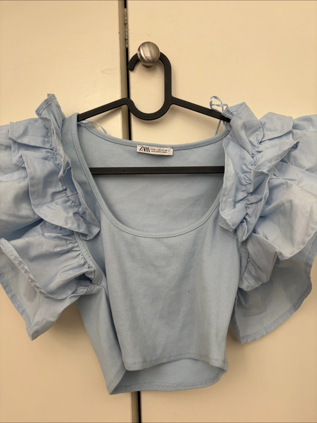 Buy & SellZara Blue Ruffle Sleeve Top - Size MZara Blue Ruffle Sleeve Top - Size M$4Here's a cute Zara top with adorable ruffle sleeves! It's a light blue colour and in size medium. Perfect for adding a bit of flair to your outfitConditionNewSizeMBrandZaraWHERE TO MEETJoyce–CollingwoodView MapSELLERverifiedEllenJoyce Station1095 reviews0 chats·0 favorites·11 viewsSEND CHAT TO SELLERHi Ellen! I’m interested in your listing.Hi Ellen! I’m interested in your listing.Get the Karrot app to chatSign In to chat