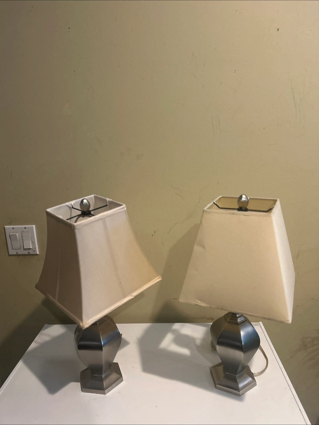 Selling a pair of table lamps! They feature a unique geometric base and a classic square shade. Perfect for adding a touch of elegance to any room