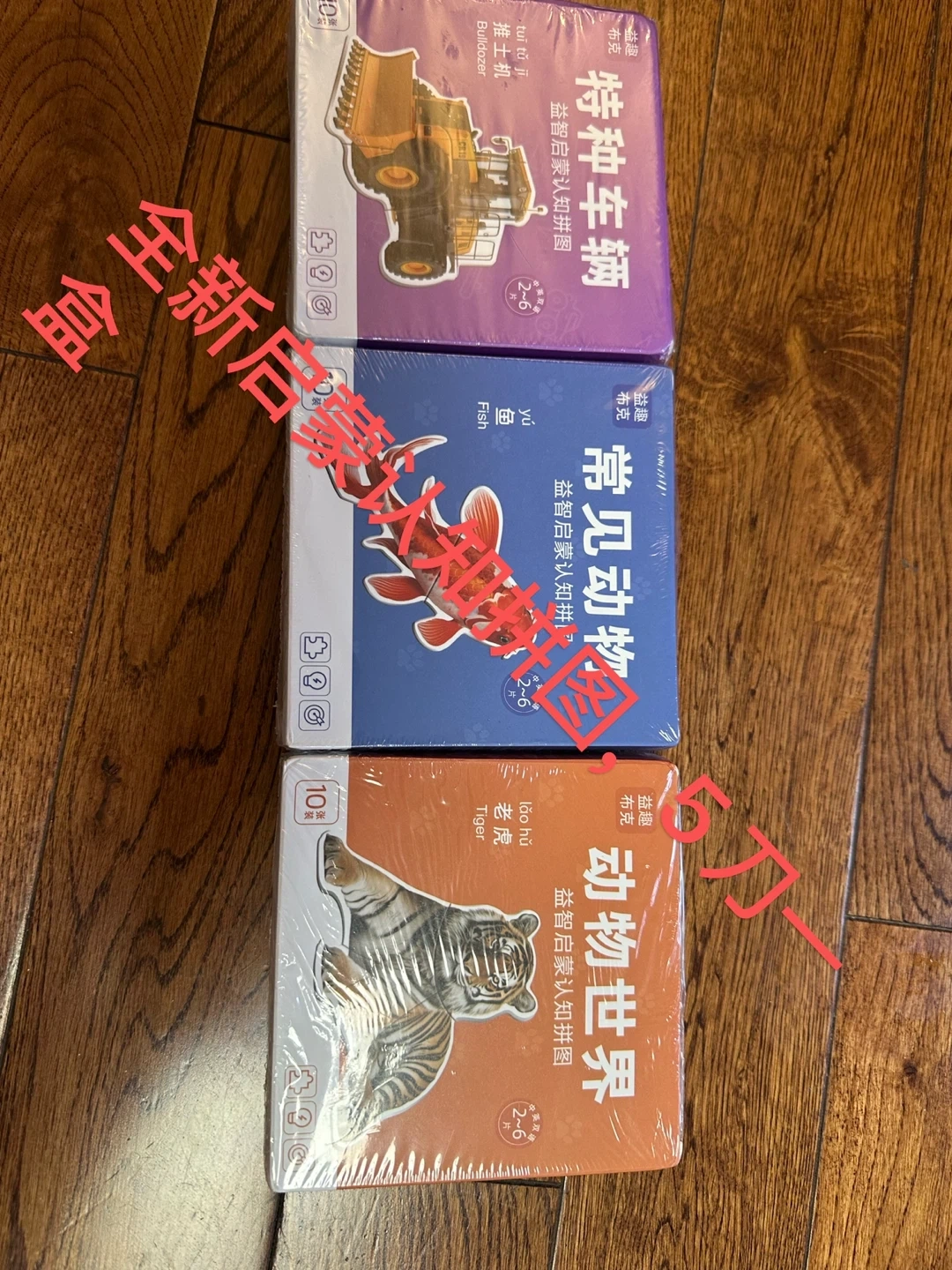 Three Busyeasy learning puzzles: Special Vehicles, Common Animals, and Animal World. Each puzzle is designed for ages 2-6 and is great for early cognitive development. Includes a bulldozer, fish, and tiger themes.