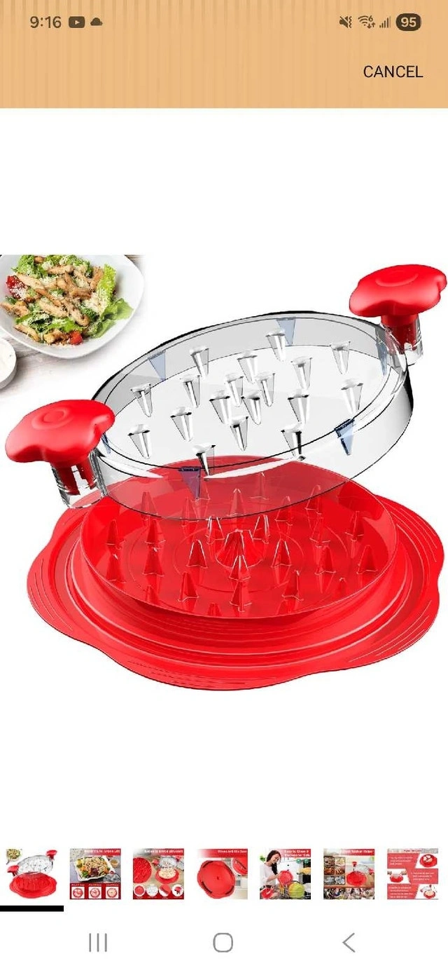 This is a new, unused meat shredder perfect for easily pulling pork, chicken, and beef at home. It features a unique flower appearance, a visible clear cover, a strong anti-slip strip, and an ergonomic handle. Looking for an easy way to shred meat for tacos, salads, or sandwiches? This meat shredder is the perfect solution! If you see this ad, it's still available.