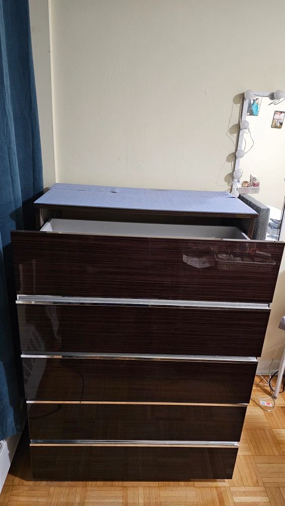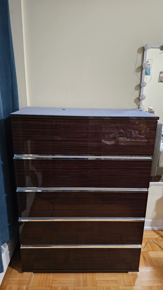 Buy & SellFive-Drawer Dark Wood DresserFive-Drawer Dark Wood Dresser$175Modern dresser. Five drawers with silver accents. Dark wood finish. Great for bedroom storage. Lots of Storage PU OnlyConditionLike newWHERE TO MEETCheck LocationView MapSELLERverifiedHarisThorncliffe Park721 review0 chats·0 favorites·17 viewsSEND CHAT TO SELLERHi Haris! I’m interested in your listing.Hi Haris! I’m interested in your listing.Get the Karrot app to chatSign In to chat