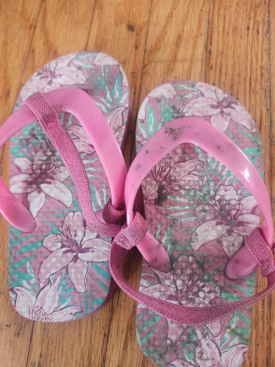 🥕 Pink Floral Flip Flops with Straps