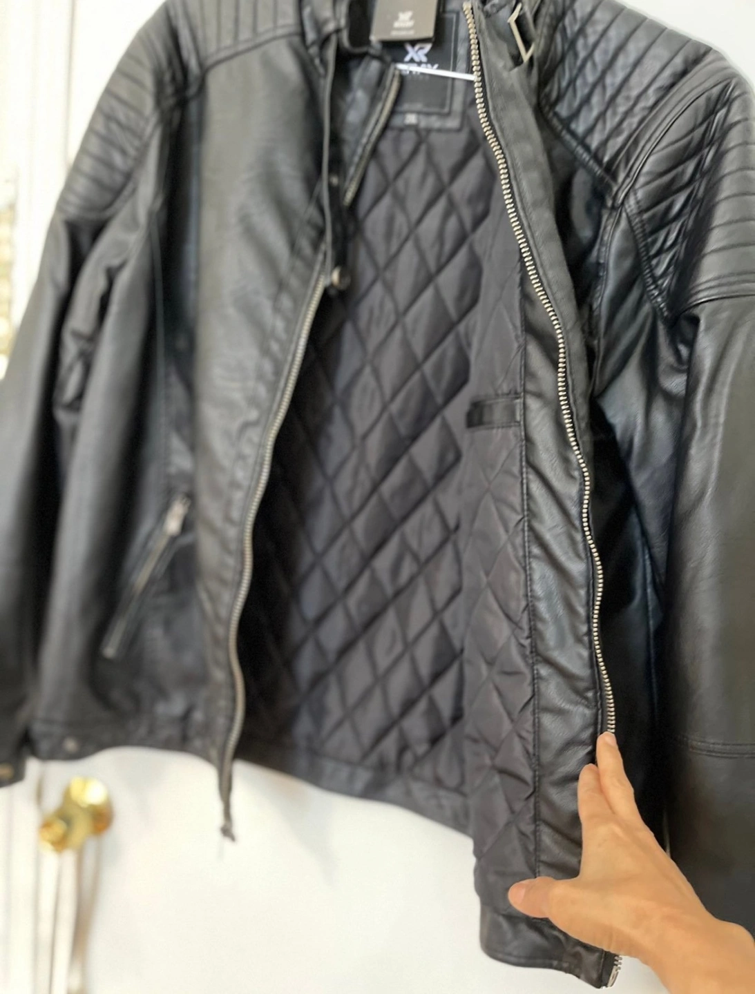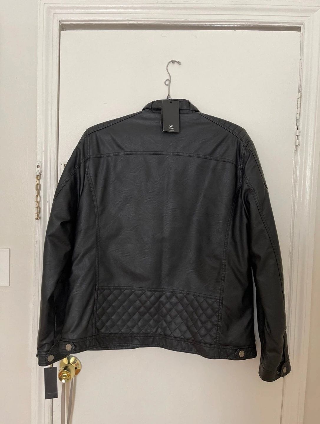 Black faux leather Quilted moto jacket