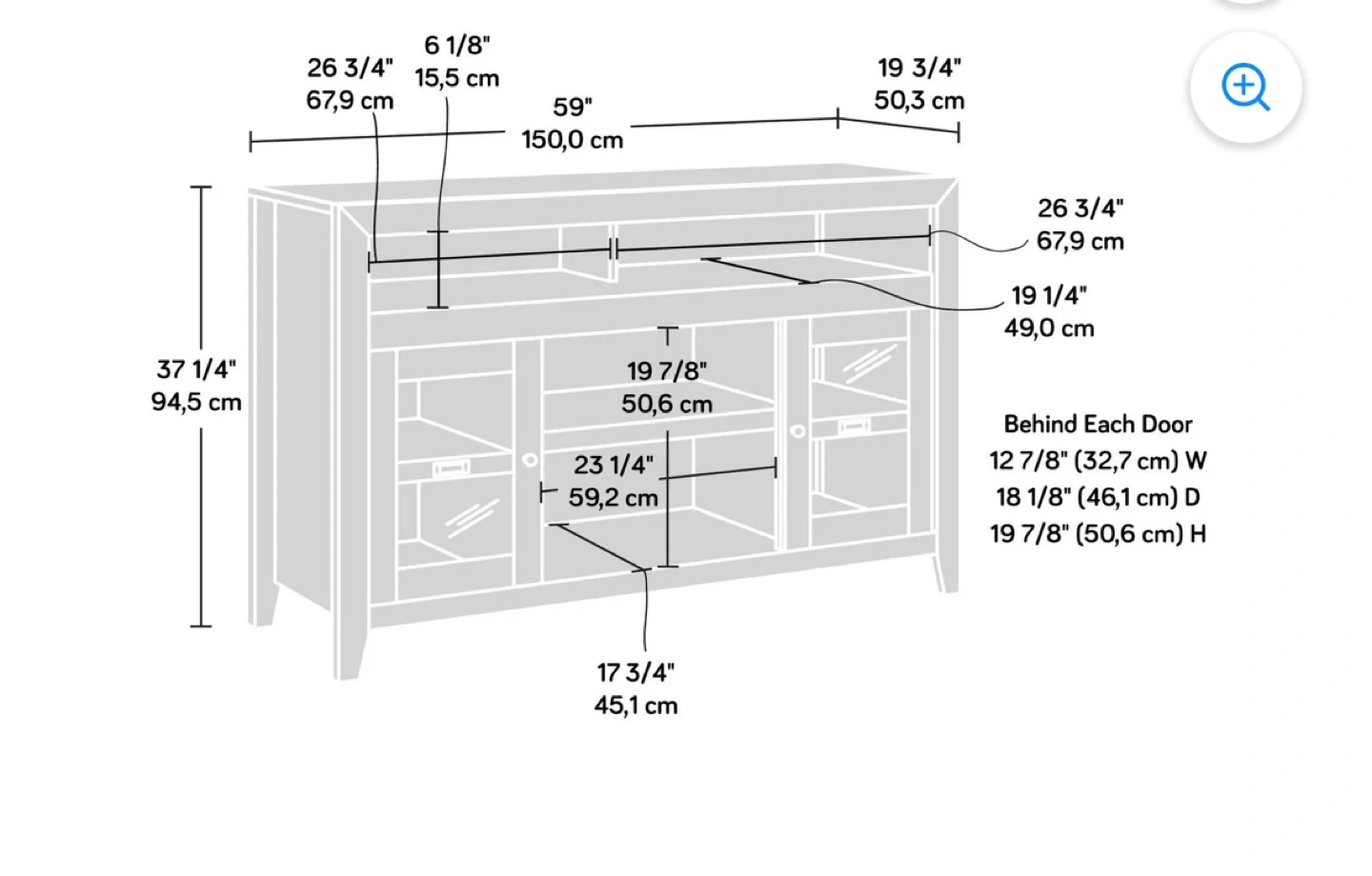 - Dimensions59 in x 19.75 in x 37 in ( W x D x H)