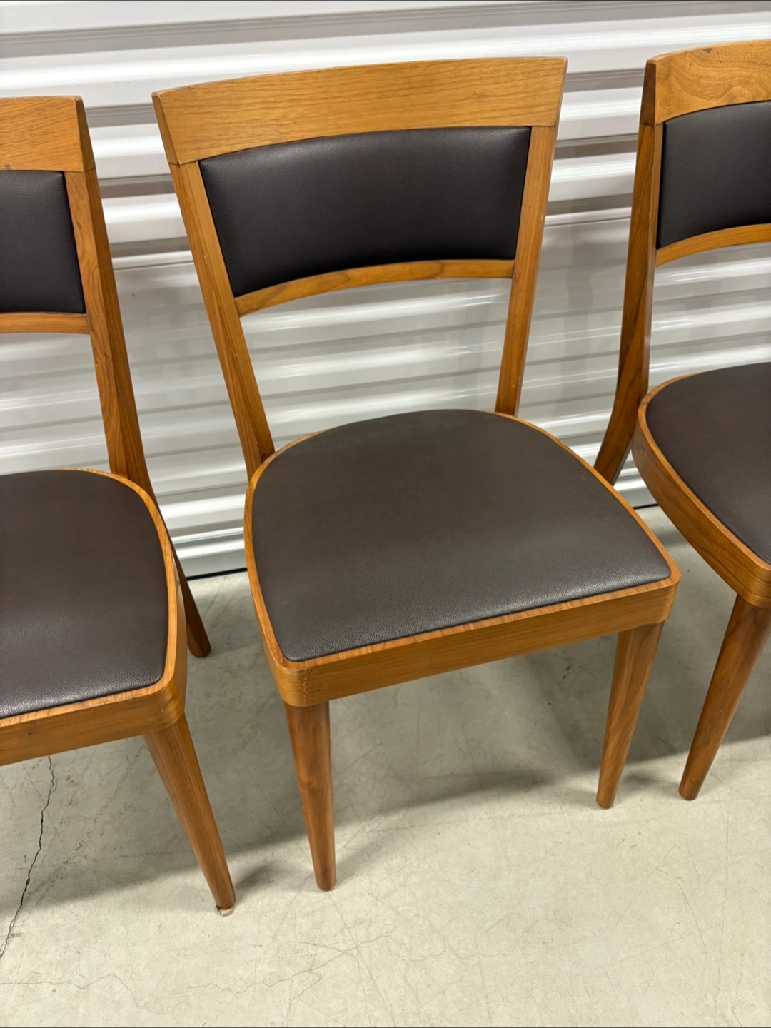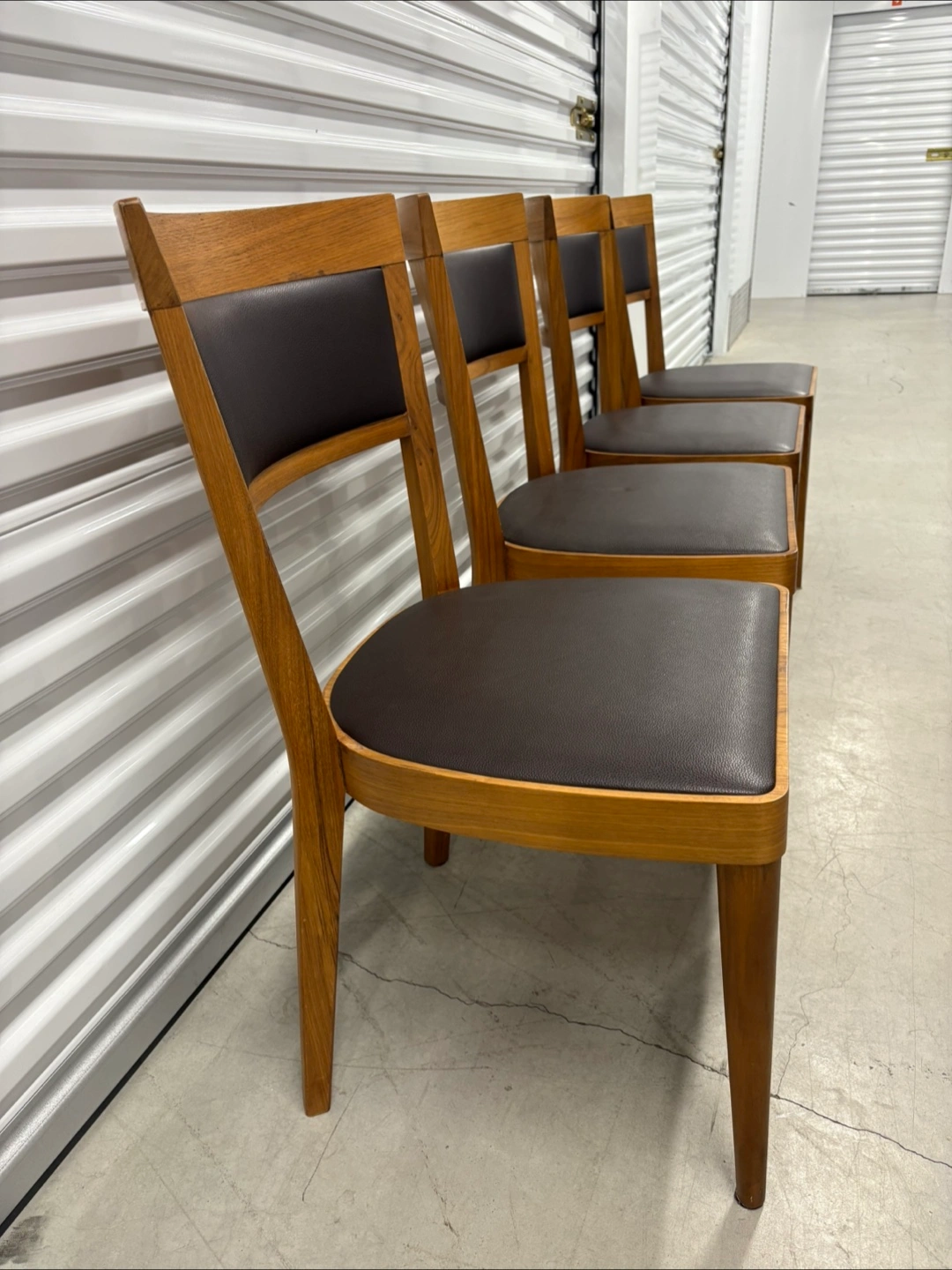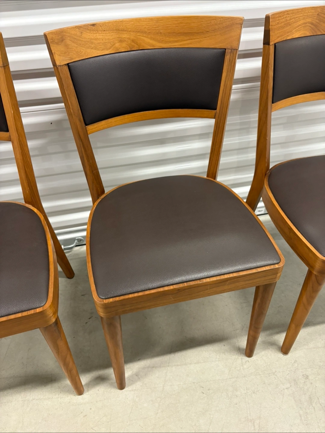 4 beautiful chairs in great condition. The seats are a very dark brown color (chocolate).