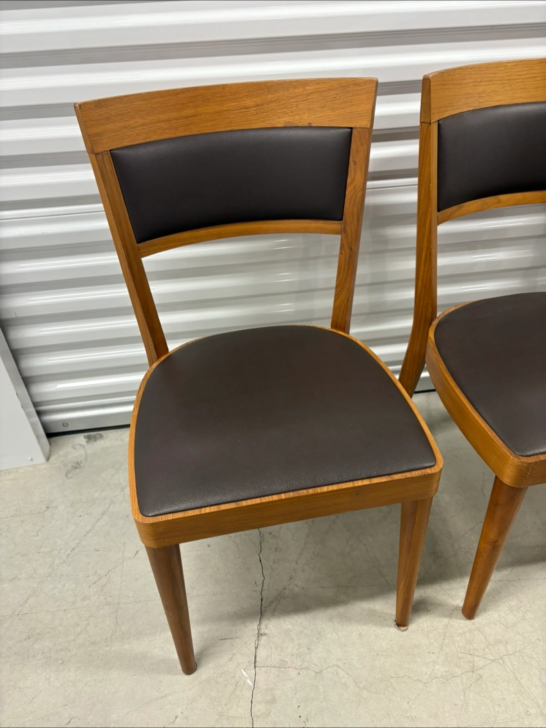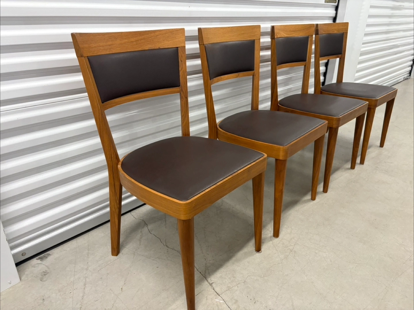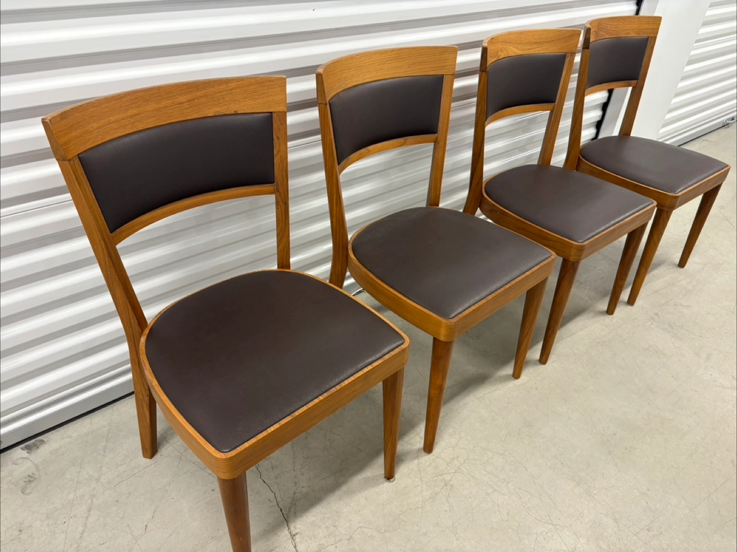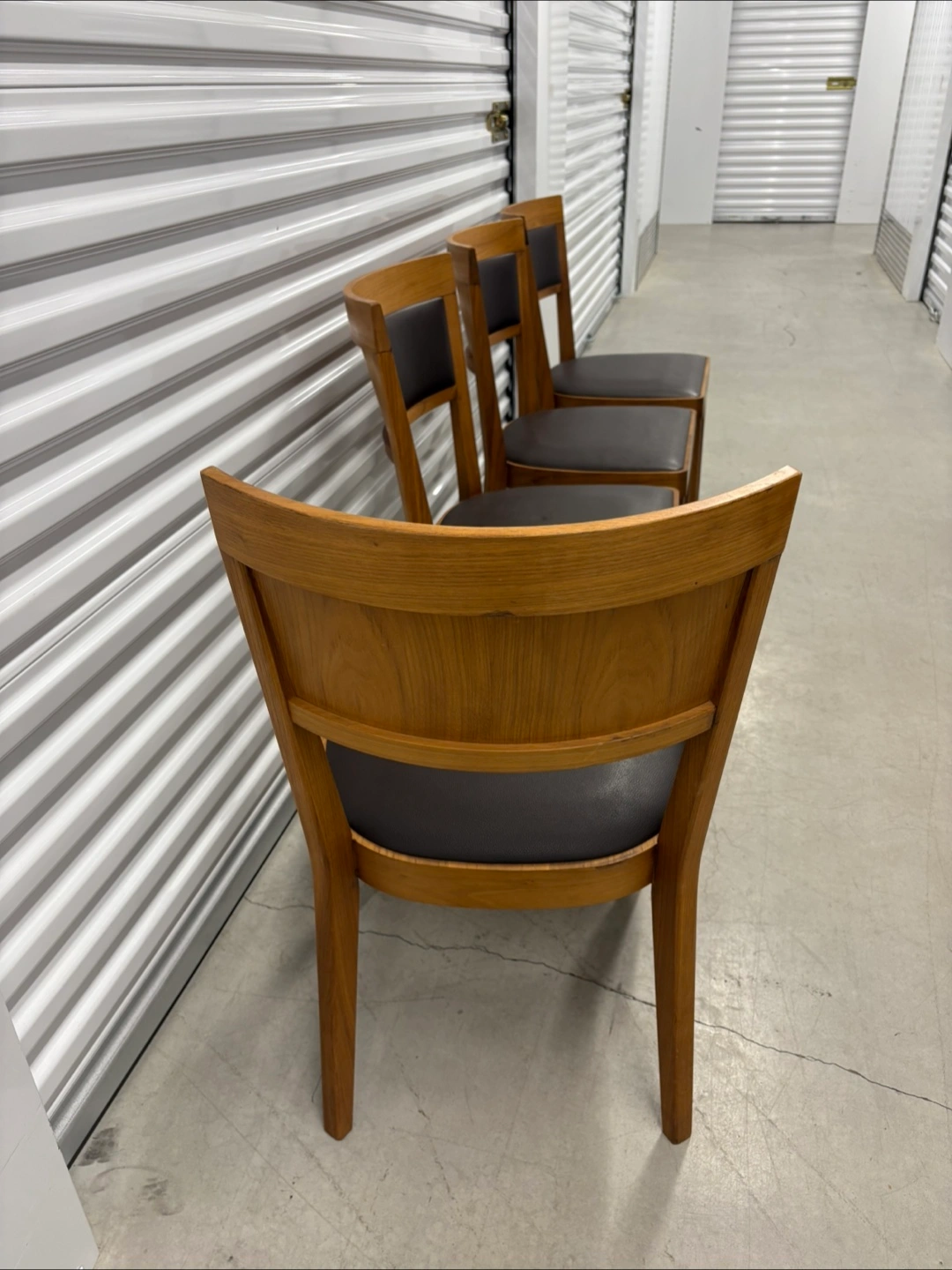 4 beautiful chairs in great condition. The seats are a very dark brown color (chocolate).