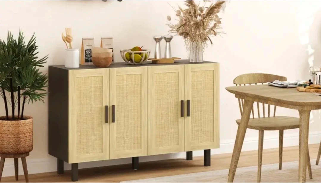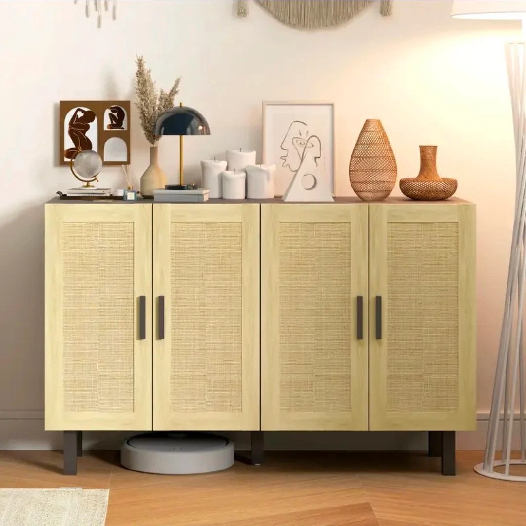 Brand new in box - Modern 4-Door Rattan Accent Cabinet 53.2" W