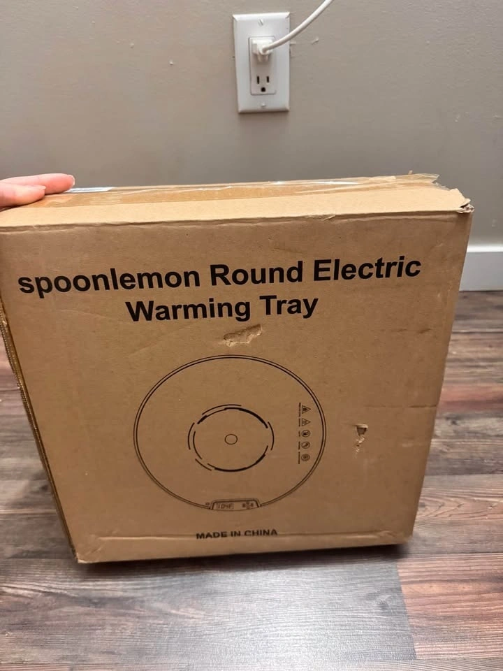 Portable electric round warming tray, foldable & roll up silicone heating mat pad for food. Flexible plate warmer for kitchen, travel, or parties. Features 10-second fast heating and adjustable 9 temperature settings.
