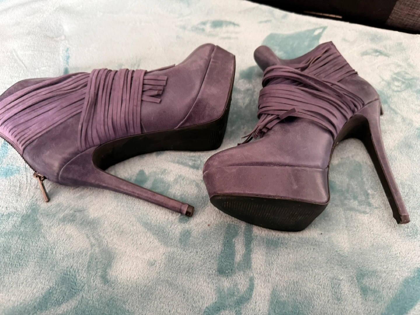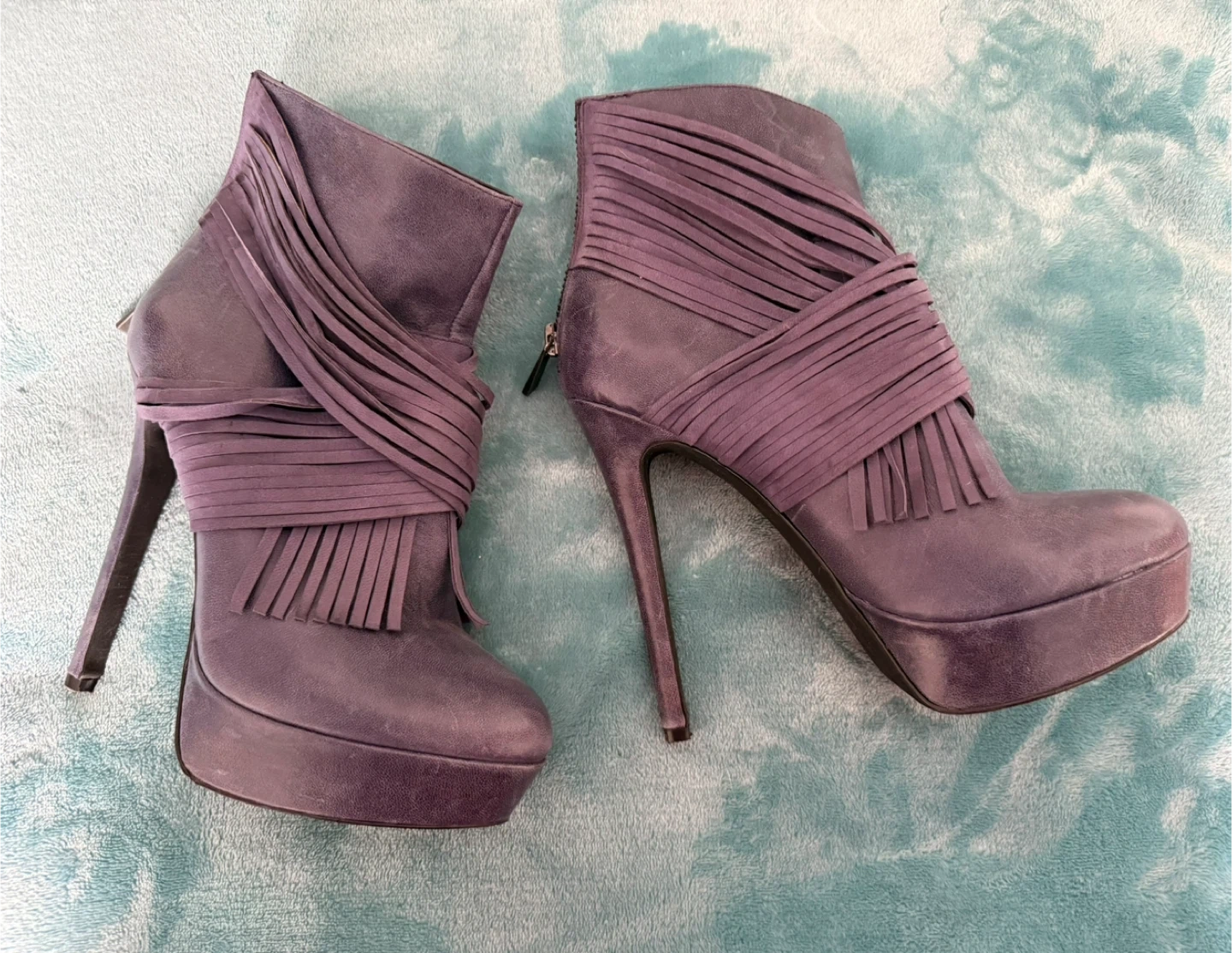 Jessica Simpson Purple leather Fringe Heeled Ankle Boots