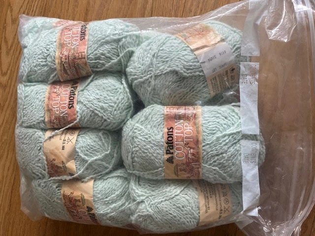 Buy & SellPatons Cotton Top Yarn - Lt GreenPatons Cotton Top Yarn - Lt Green$25Brand new Patons Cotton Top yarn, 100% cotton, 50gms each. Selling 3 skeins in Light Green. Asking $25.00 for all three.WHERE TO MEETCheck LocationView MapSELLERRonBoyle Street100 reviews0 chats·0 favorites·1 viewsSEND CHAT TO SELLERHi Ron! I’m interested in your listing.Hi Ron! I’m interested in your listing.Get the Karrot app to chatSign In to chat