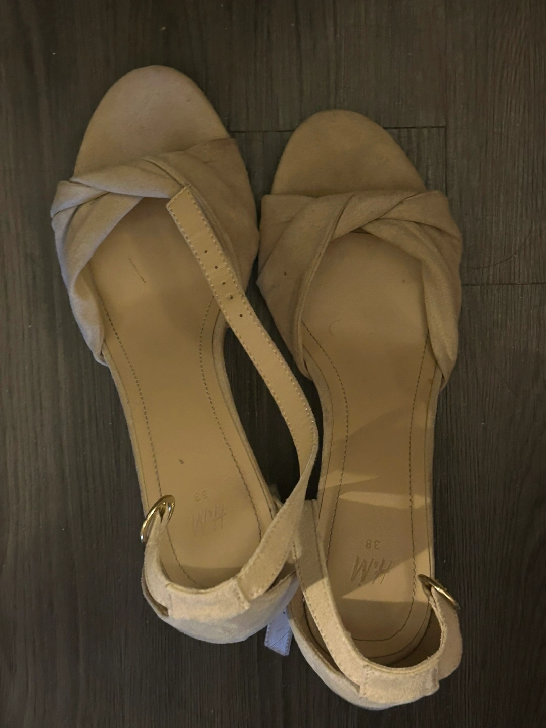 Beige Suede Ankle Strap Heels - Size 38