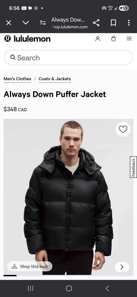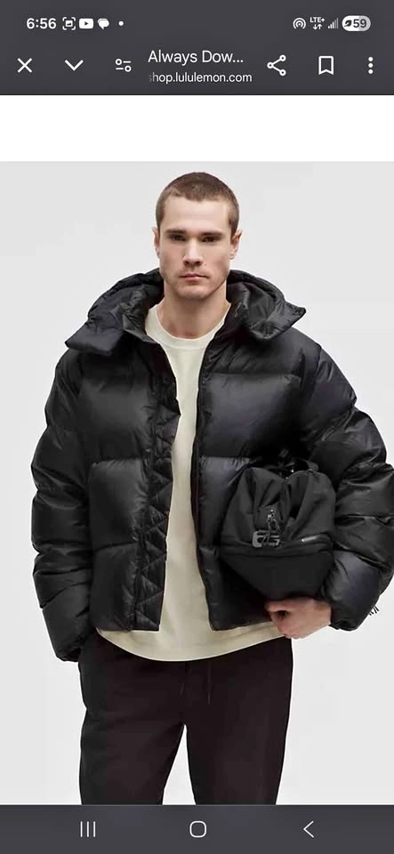 This Lululemon Men's Always Down Puffer Jacket in size Small is windproof and water-resistant, featuring 600-fill-power goose down for mid-level warmth. It has a relaxed, hip-length fit, suitable for layering, and includes a removable hood, a zippered internal pocket, and a cincheable hem. The jacket is machine washable. Feel free to message if you have any questions!