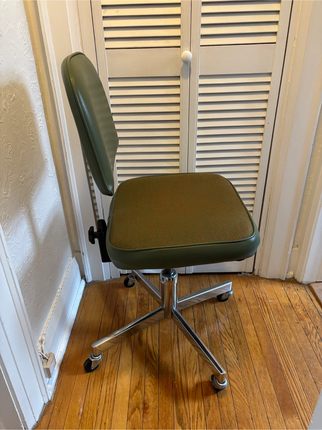 Buy & SellVintage Office ChairVintage Office Chair$75Made in Toronto. No damage. No smoking/pets, super clean. Great colour. Just dont have room for it anymore.WHERE TO MEETBloor West VillageView MapSELLERMattJunction Area635 reviews1 chats·2 favorites·13 viewsSEND CHAT TO SELLERHi Matt! I’m interested in your listing.Hi Matt! I’m interested in your listing.Get the Karrot app to chatSign In to chat