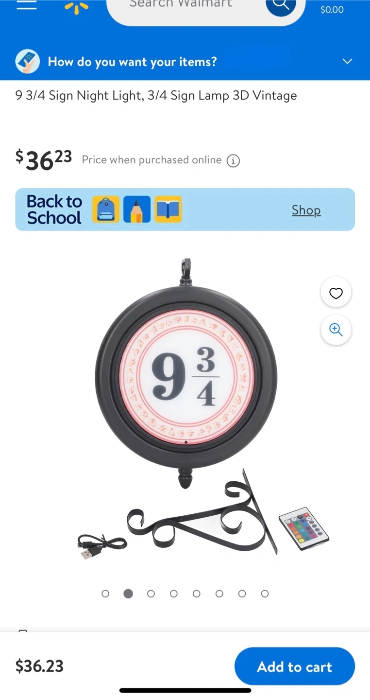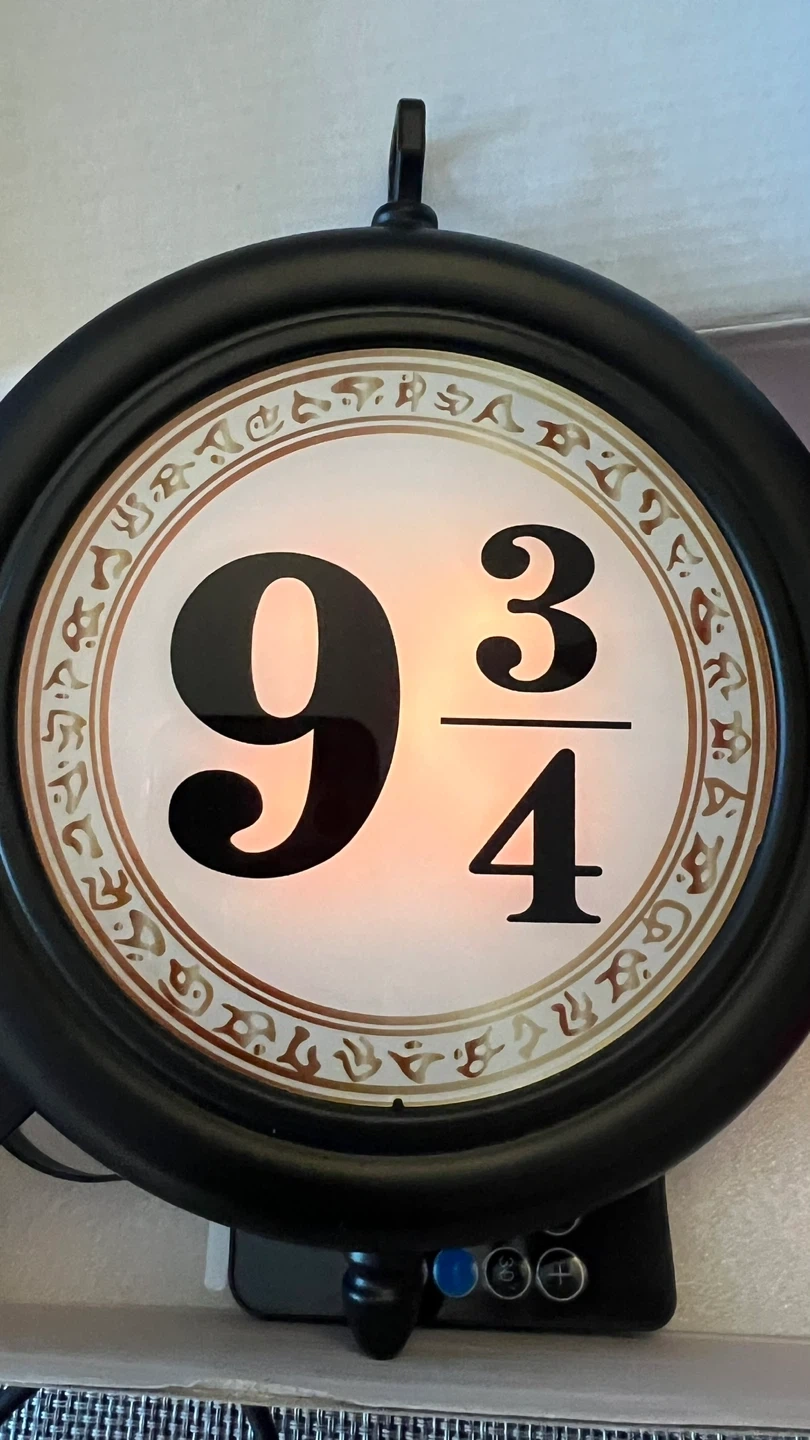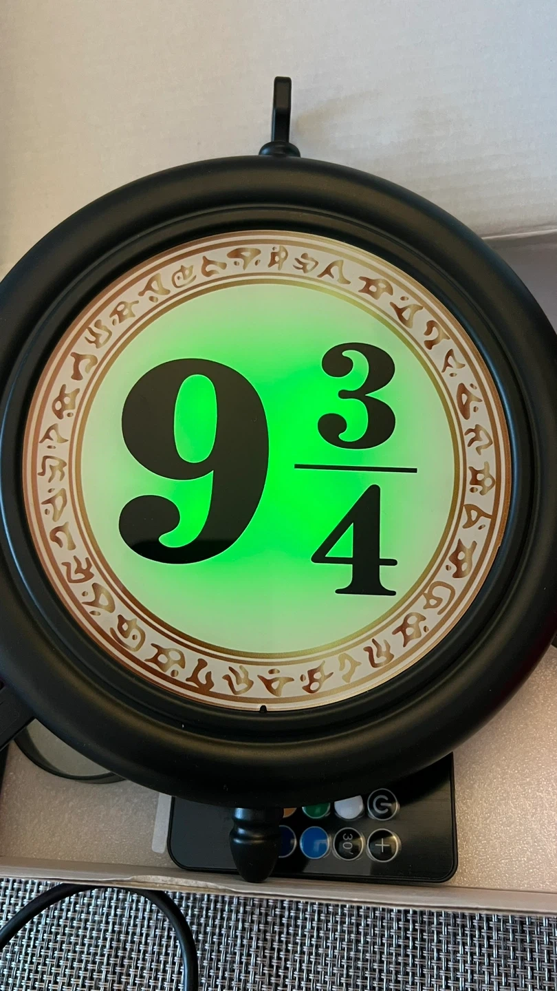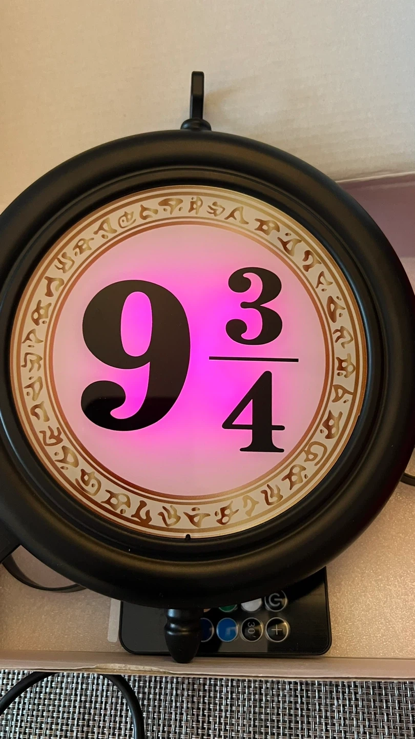 Hanging LED double-sided nightlight with remote control - resembles the Kings Cross Station sign for Platform 9 3/4 to the Hogwart’s Express!