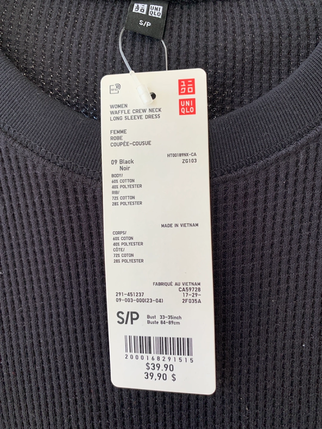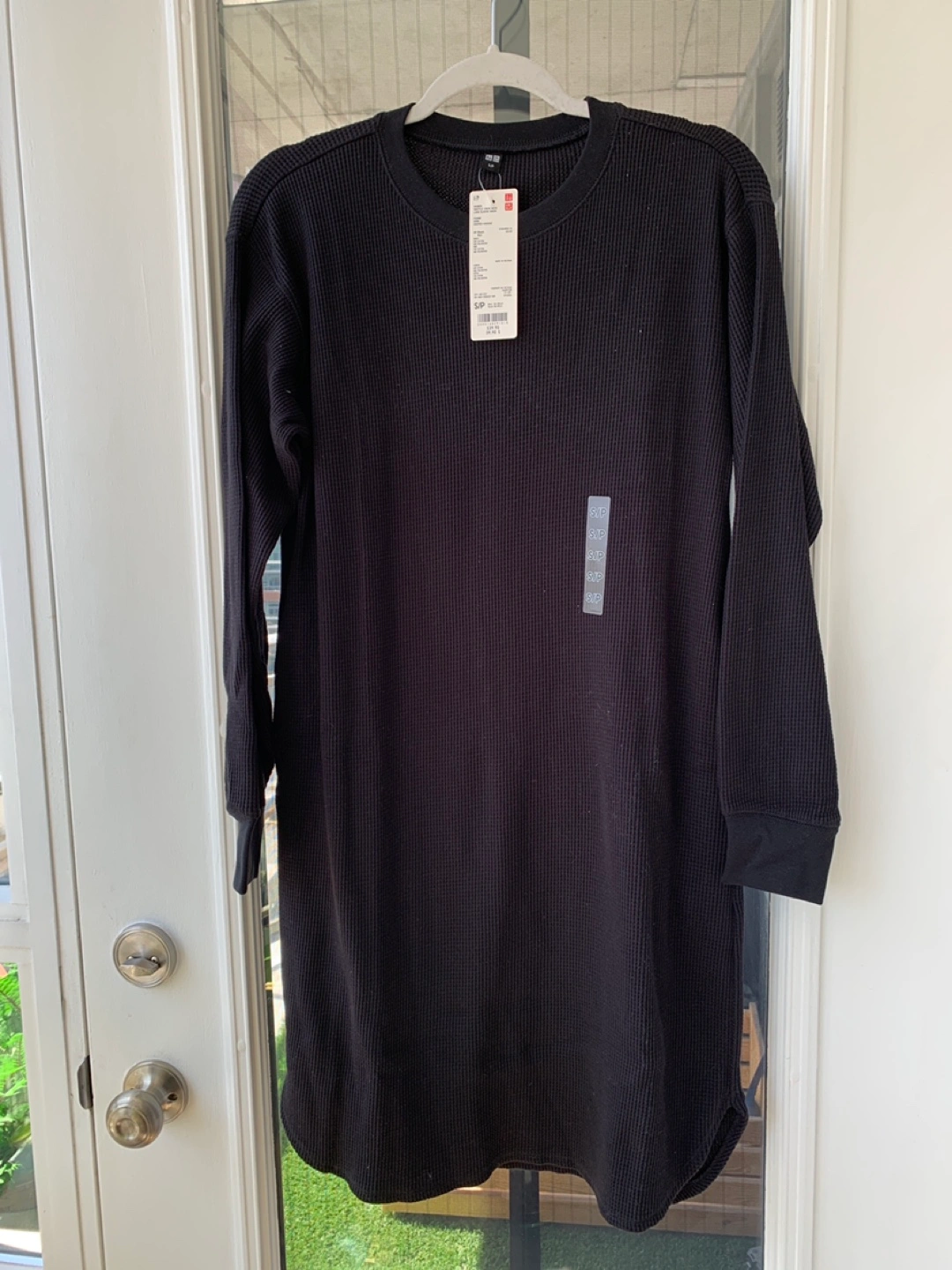 Brand new with tags. Black waffle knit long sleeve dress. Size small. Crew neck. Relaxed fit.
