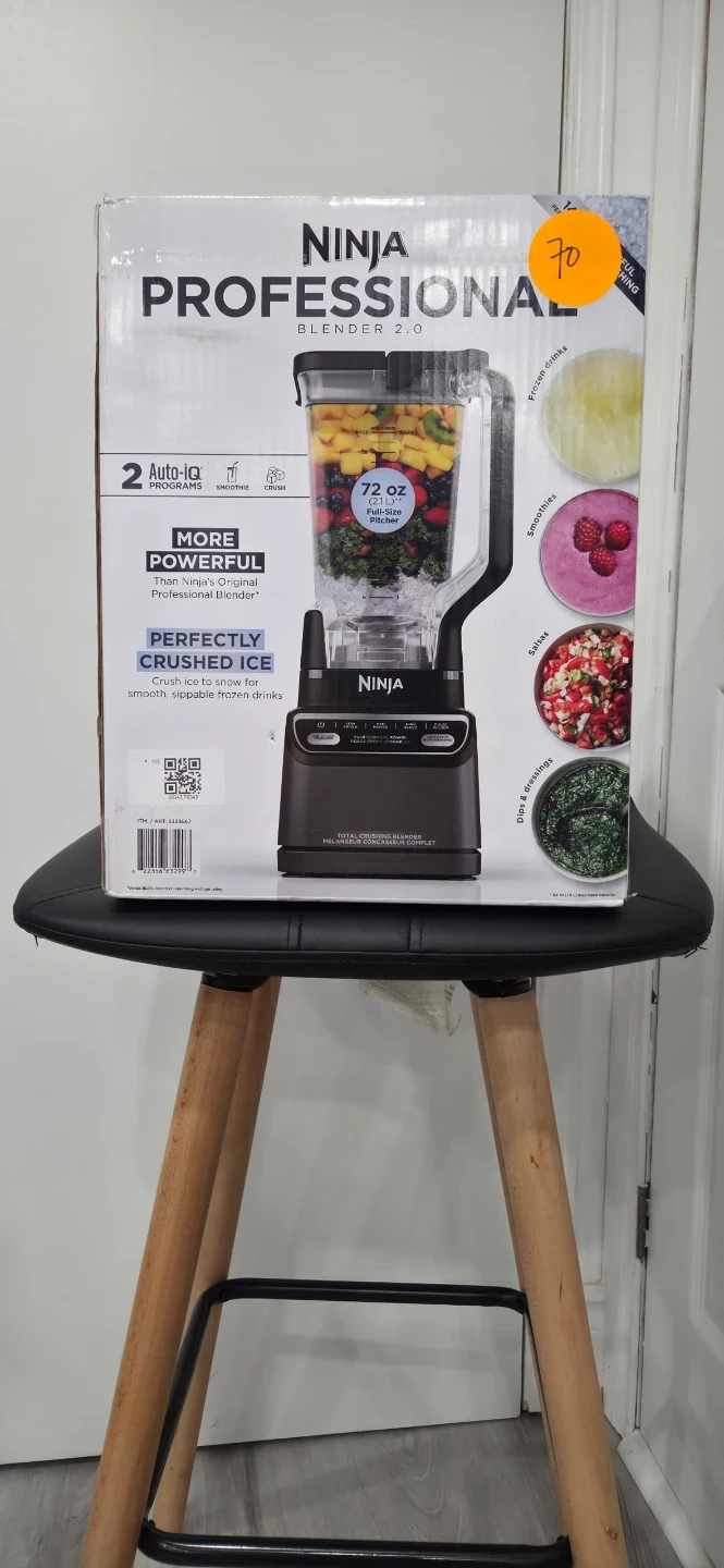 Ninja Professional Blender 2.0 with 72 oz pitcher. It has 2 Auto-IQ programs. This powerful blender is great for crushing ice to snow for smooth,sippable frozen drinks and makes smoothies perfectly.