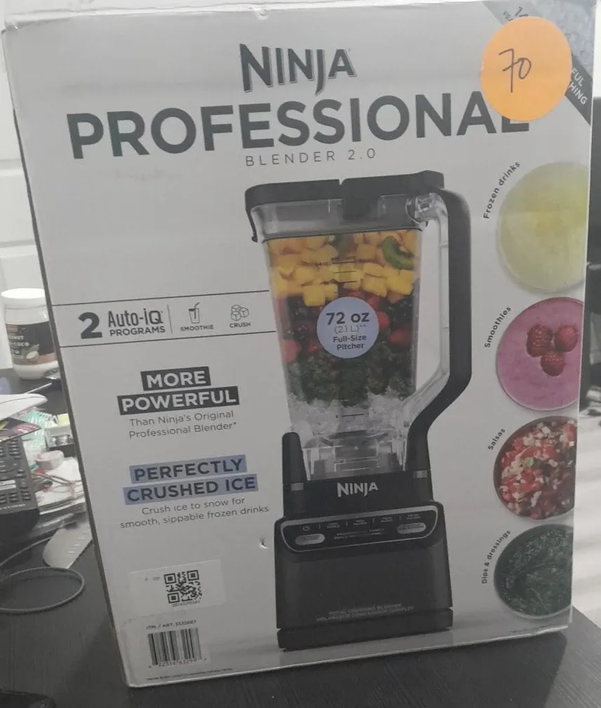 Ninja Professional Blender 2.0 with 72 oz pitcher. It has 2 Auto-IQ programs. This powerful blender is great for crushing ice to snow for smooth,sippable frozen drinks and makes smoothies perfectly.