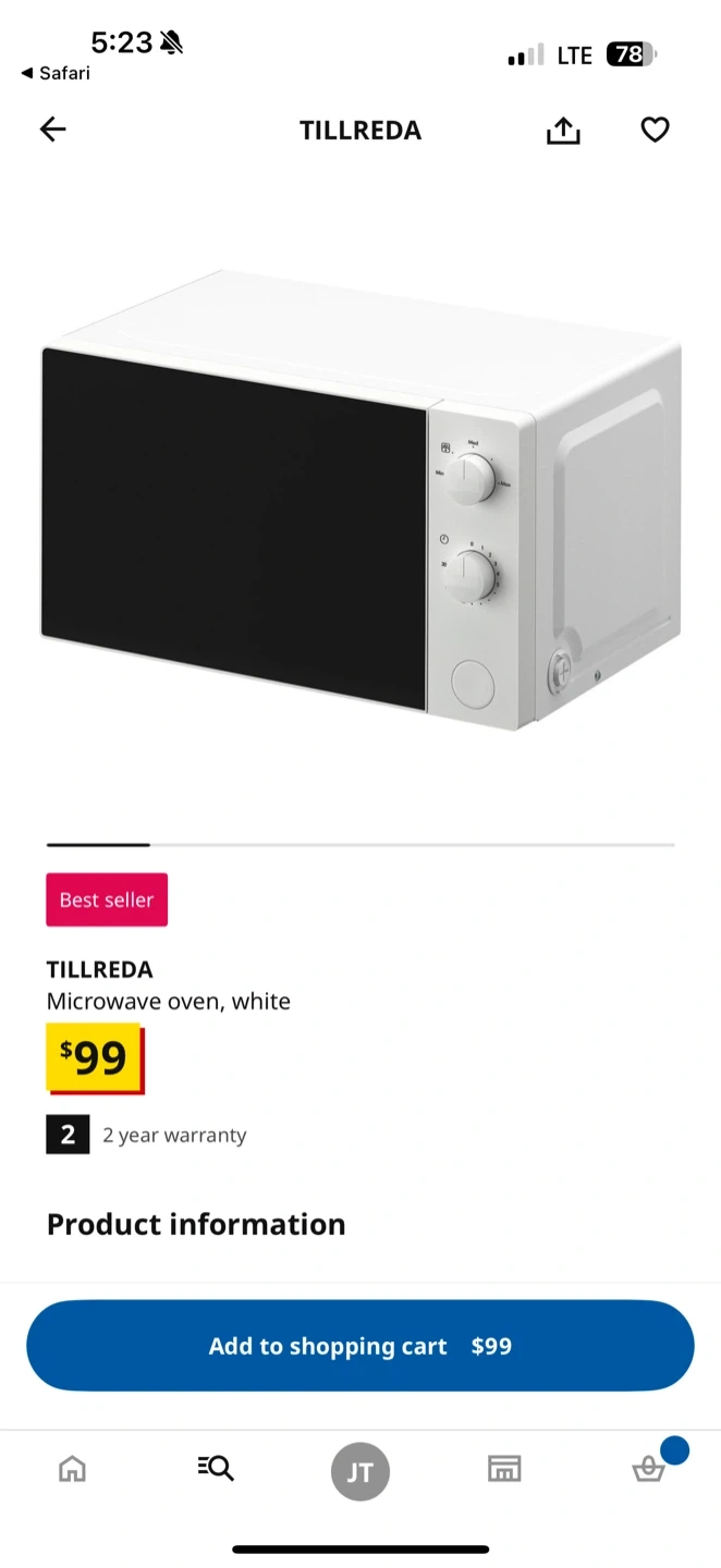 Selling a TILLREDA microwave oven from IKEA. It's white and in good working condition. Originally bought for $99.