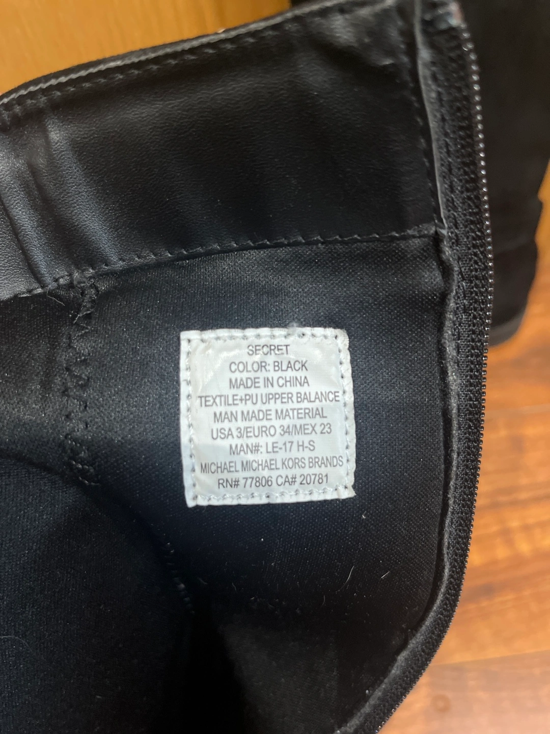 These are a pair of Michael Kors black boots in a youth size 3. They are made of textile and PU upper materials. The boots are in good condition and ready for a new home!