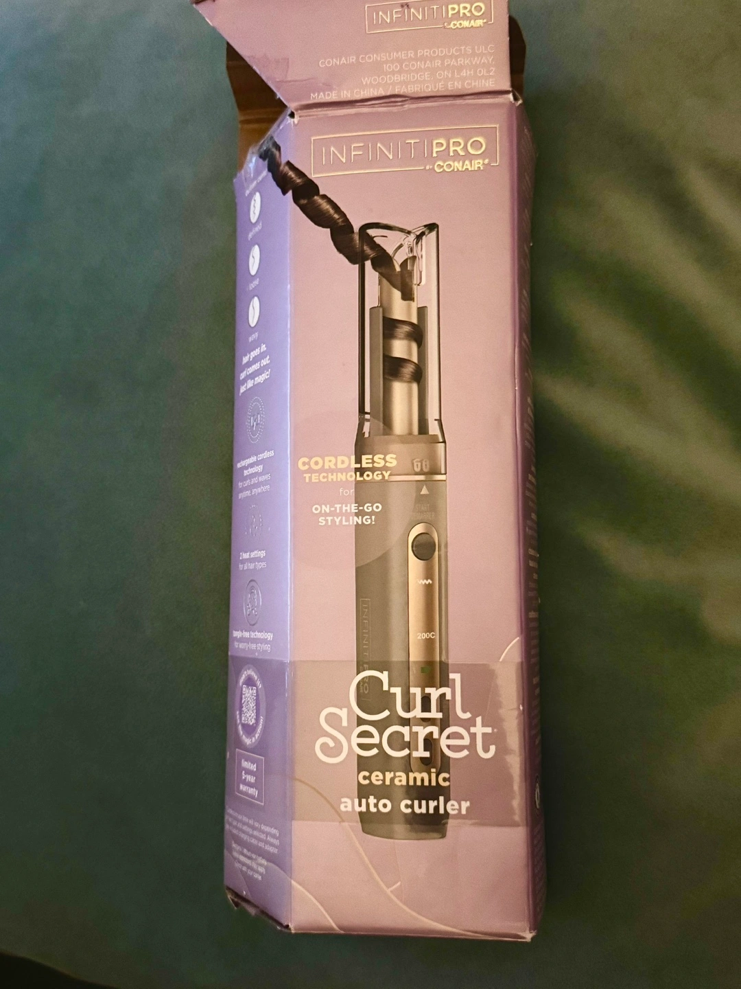 New, Conair Infinitipro Curl Secret cordless auto curler. Ceramic technology. Includes charger and instructions. Great for on-the-go styling. Never used.