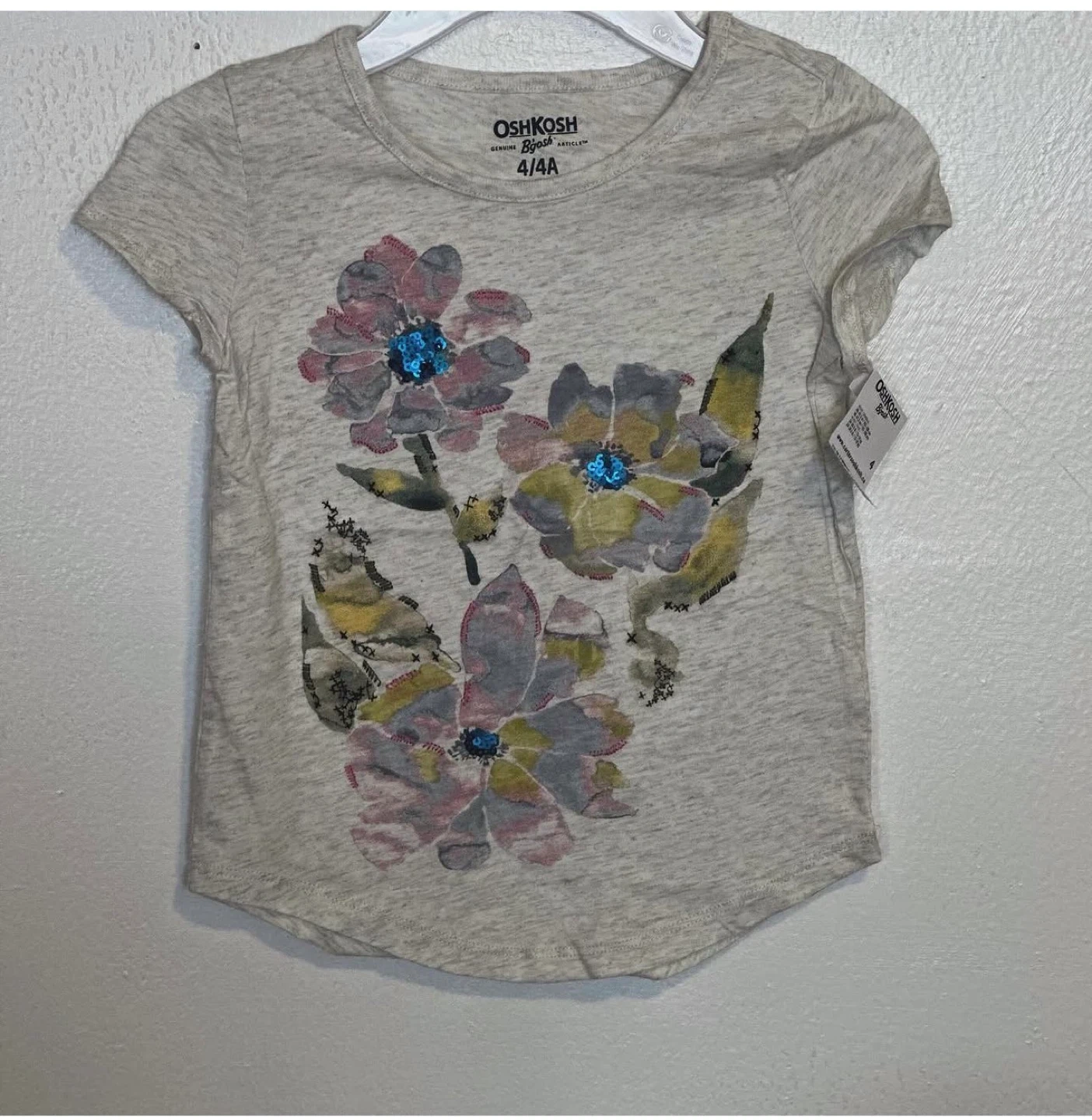 OshKosh B'gosh Girls Floral Sequin T-Shirt Size 4/4A