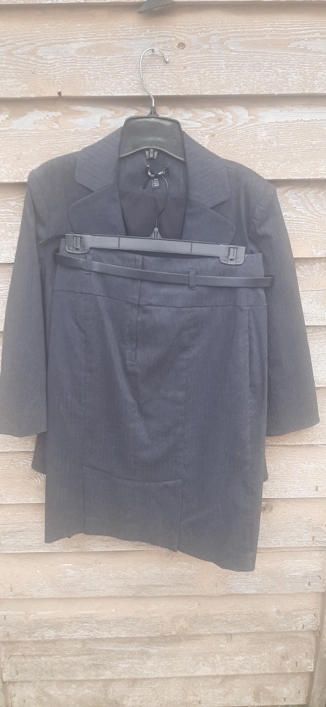 Selling a Le Chateau skirt suit set in size 6. The set includes a blazer and a skirt with a belt. A classic design and it's in great condition and perfect for professional wear. Ready for a new home! Priced for a quick sale at $18. Yes it's available if you see the ad up. FCFS. No holds or E-Transfers. Cash only.