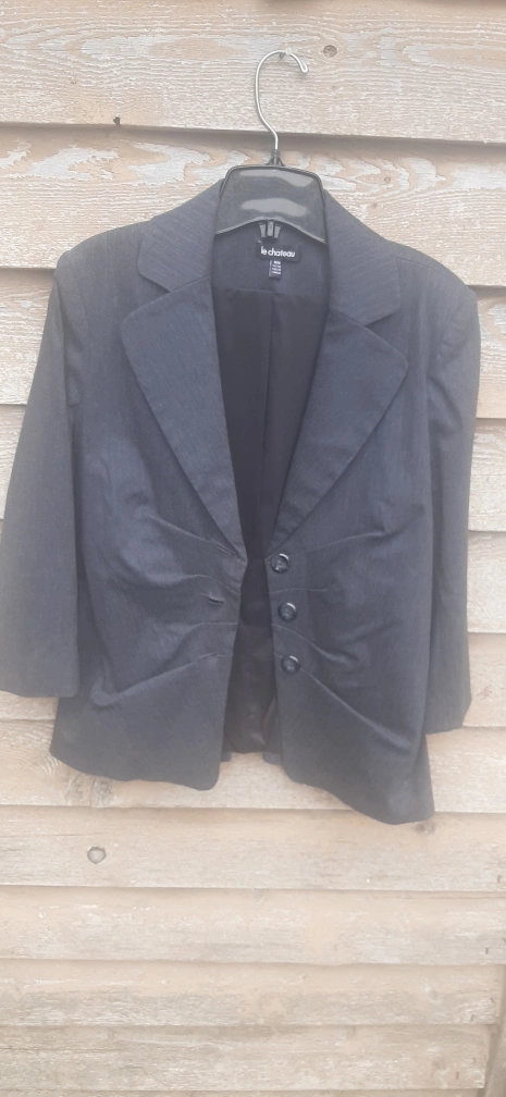 Selling a Le Chateau skirt suit set in size 6. The set includes a blazer and a skirt with a belt. A classic design and it's in great condition and perfect for professional wear. Ready for a new home! Priced for a quick sale at $18. Yes it's available if you see the ad up. FCFS. No holds or E-Transfers. Cash only.