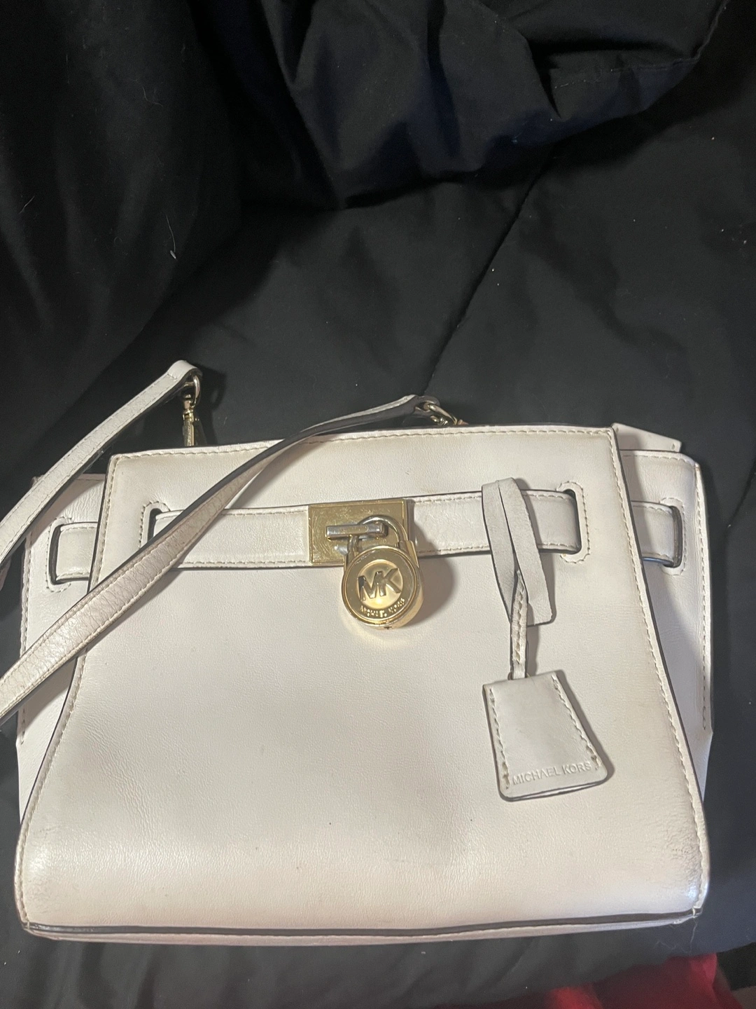 Selling a gently used Michael Kors handbag. It's a stylish white leather, perfect for everyday use. There are some signs of wear, but overall in good condition!