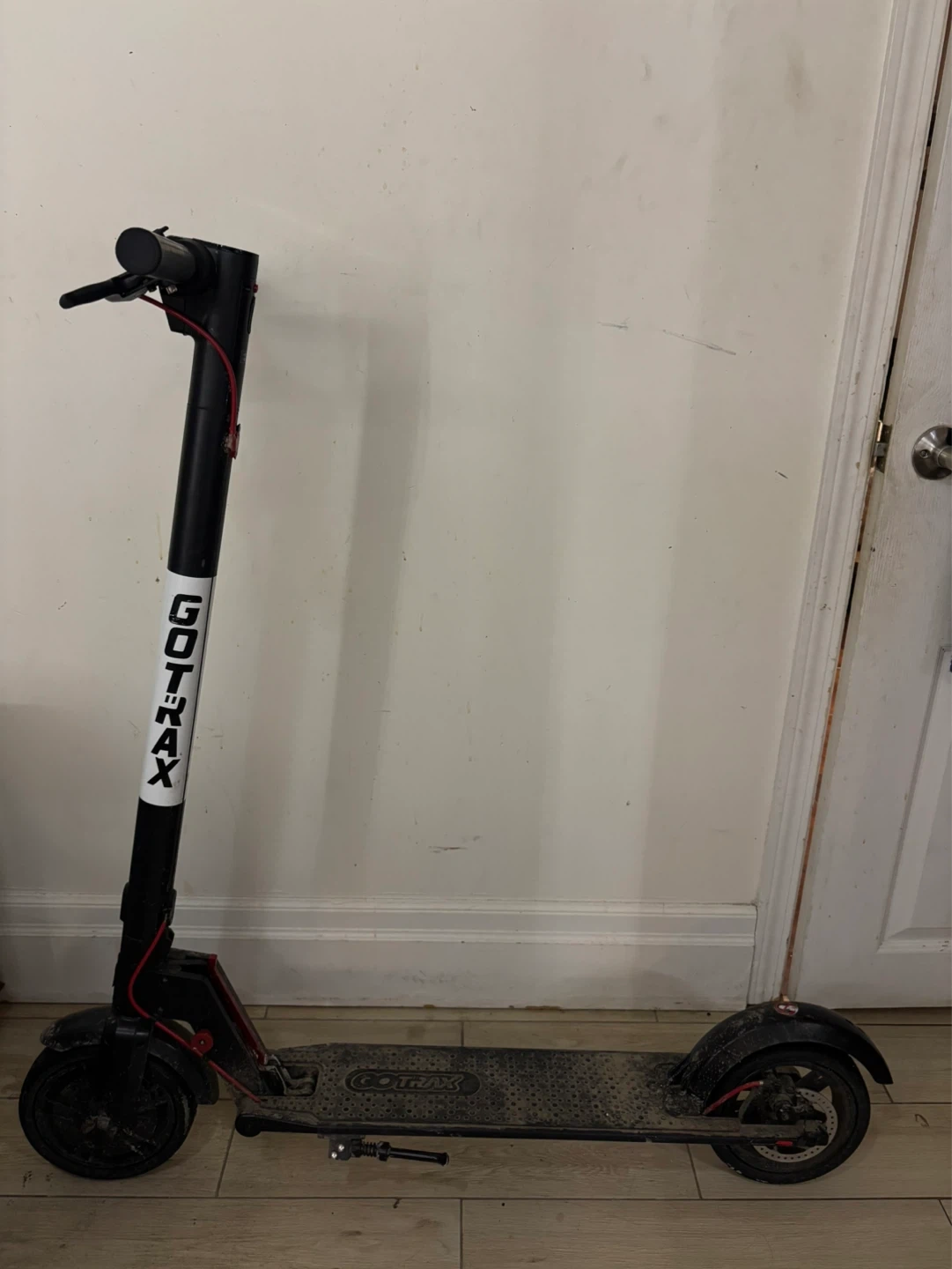 Gotrax electric scooter with a 250W motor and 8.5" solid wheels. It has a top speed of 25 km/h and a travel distance of 10-15 km.