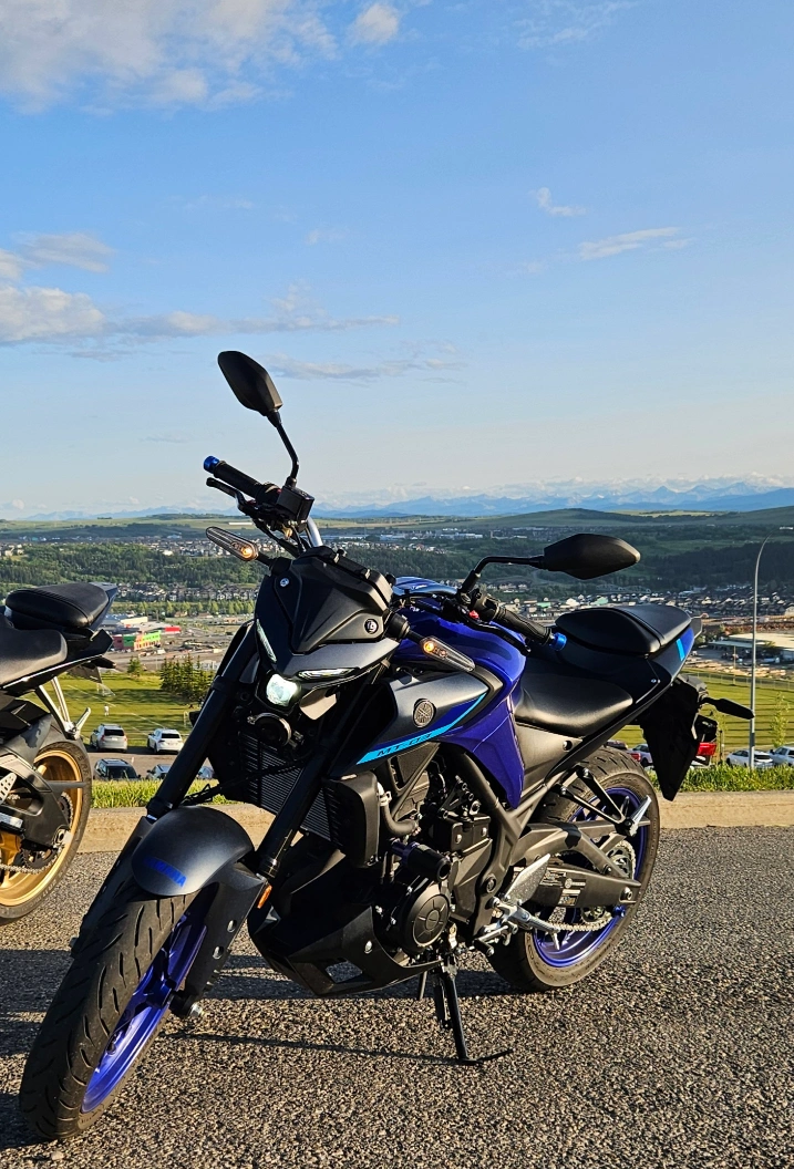 Selling my 2023 Yamaha MT-03 – great bike, lightweight and fun to ride. Has adjustable levers, frame sliders and SC project exhaust.