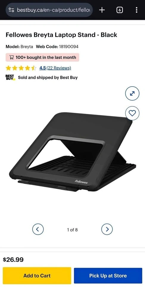 Buy & SellNew in box Fellowes Breyta Laptop Stand - BlackNew in box Fellowes Breyta Laptop Stand - Black$10I have 4 Fellowes Breyta Laptop Stand - Black. New in box. Mayfield and Winston Churchill pick up.WHERE TO MEETCheck LocationView MapSELLERajNorval100 reviews0 chats·0 favorites·7 viewsSEND CHAT TO SELLERHi aj! I’m interested in your listing.Hi aj! I’m interested in your listing.Get the Karrot app to chatSign In to chat