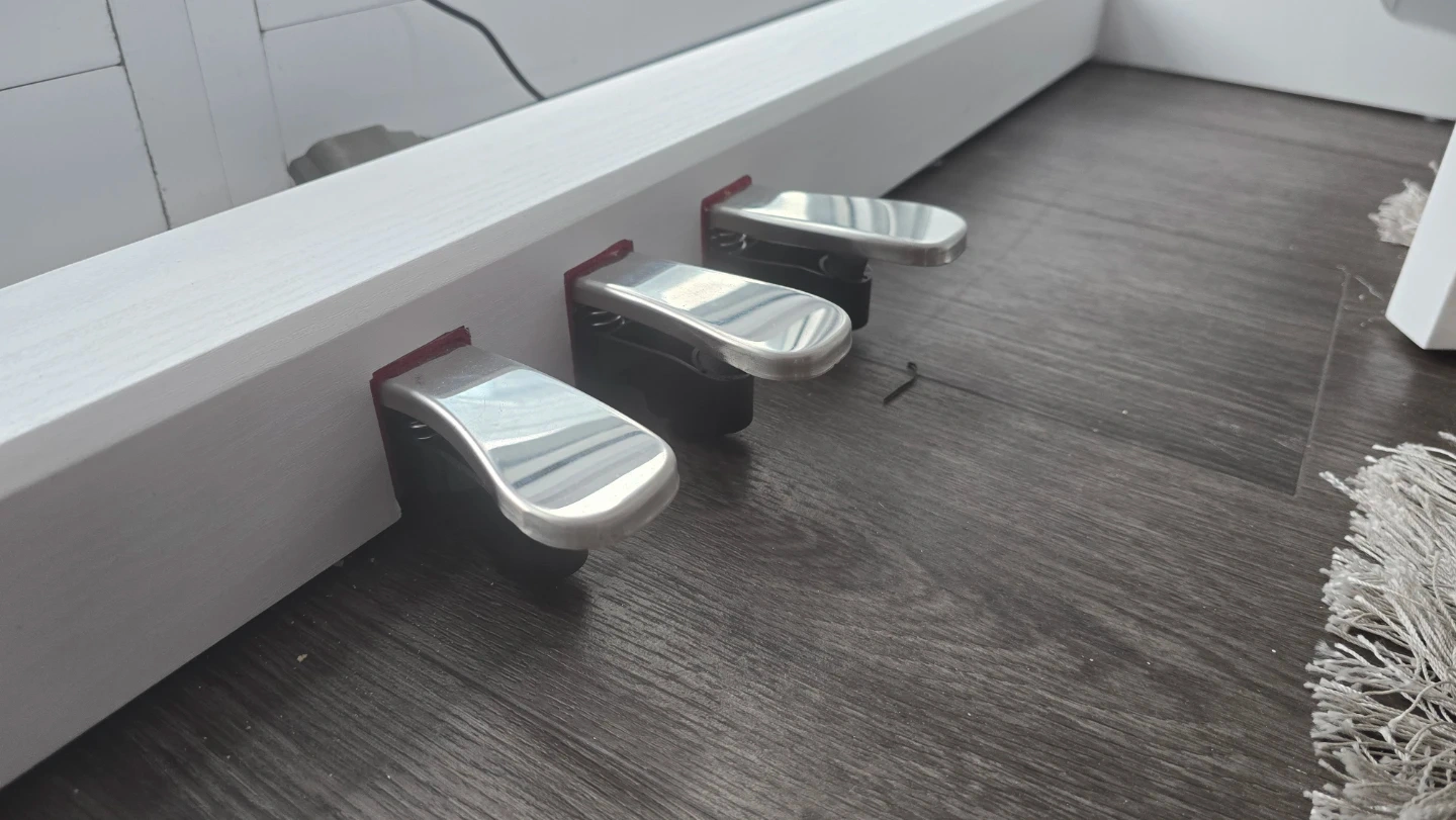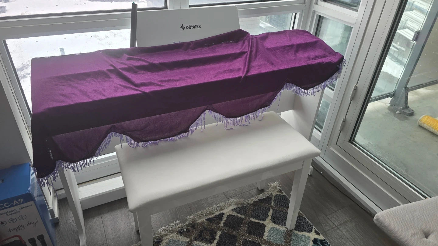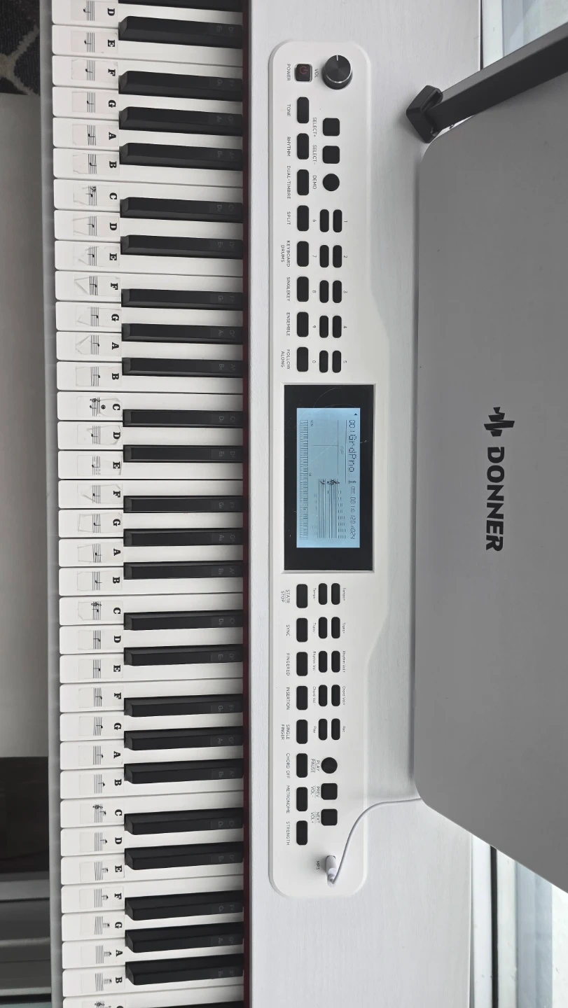 Selling a Donner DDP-95 digital piano in white, complete with a matching bench! This piano is perfect for beginners or experienced players looking for a compact and stylish instrument. It features weighted keys for a realistic feel and a variety of built-in sounds and rhythms. Comes with 3 pedals!