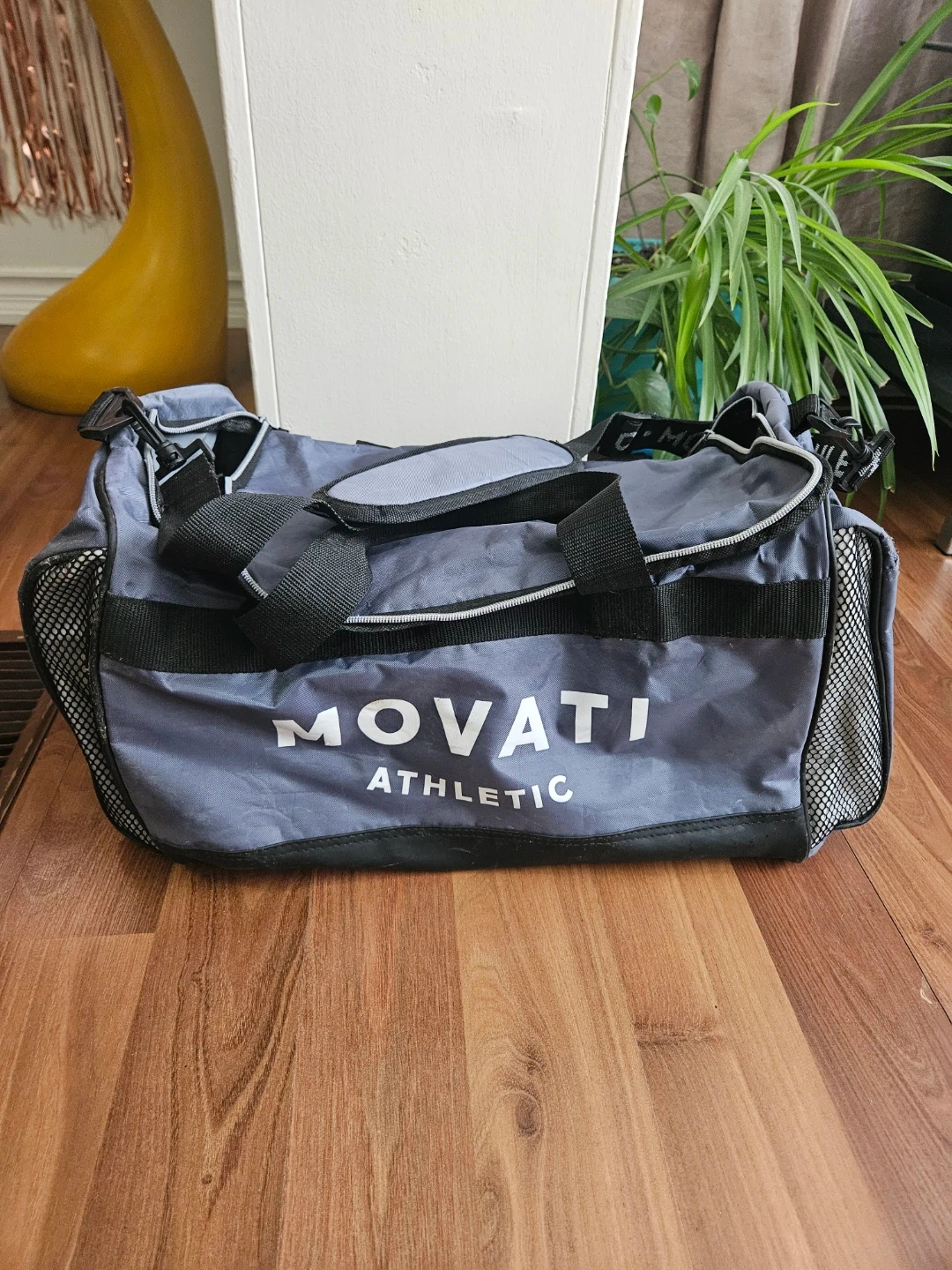 Buy & SellMovati Athletic Duffel BagMovati Athletic Duffel Bag$20Grey duffel bag with "Movati Athletic" branding. It's a good size for gym or travel. Mesh pockets on the sides for extra storage.WHERE TO MEETCheck LocationView MapSELLERDaniel ViciWeston475 reviews0 chats·0 favorites·5 viewsSEND CHAT TO SELLERHi Daniel Vici! I’m interested in your listing.Hi Daniel Vici! I’m interested in your listing.Get the Karrot app to chatSign In to chat