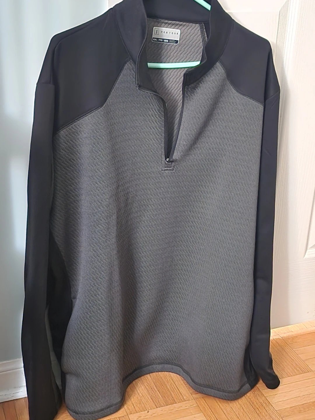 New without tags PGA tour pullover in a men's XXL size. It's a charcoal grey and black colourway with a textured front panel. A good casual dress shirt.