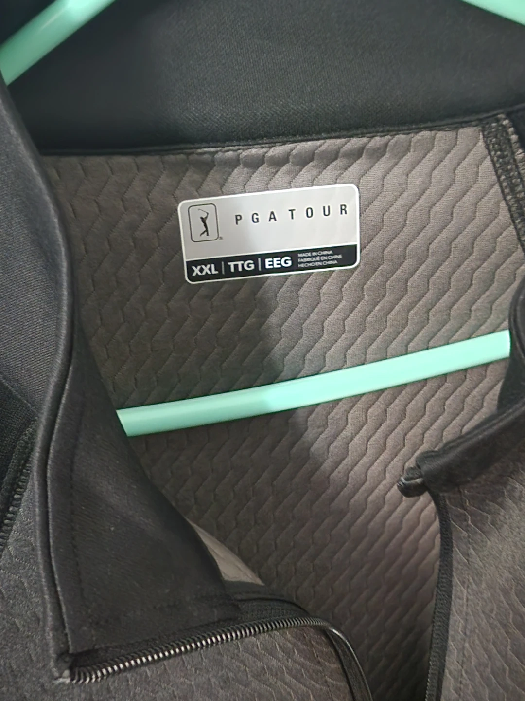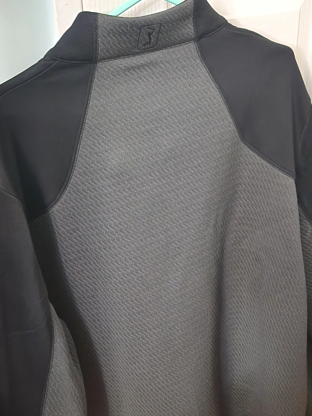 New without tags PGA tour pullover in a men's XXL size. It's a charcoal grey and black colourway with a textured front panel. A good casual dress shirt.