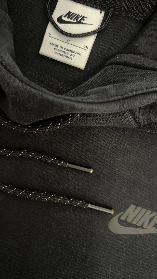 Selling a pre-owned Nike Tech Fleece Hoodie in black, size small. It's in good condition and ready to keep you warm and stylish. The hoodie features the iconic Tech Fleece material, a paneled hood, and a zippered sleeve pocket. Price is $80. If the ad is up, it's available. Come and get it!